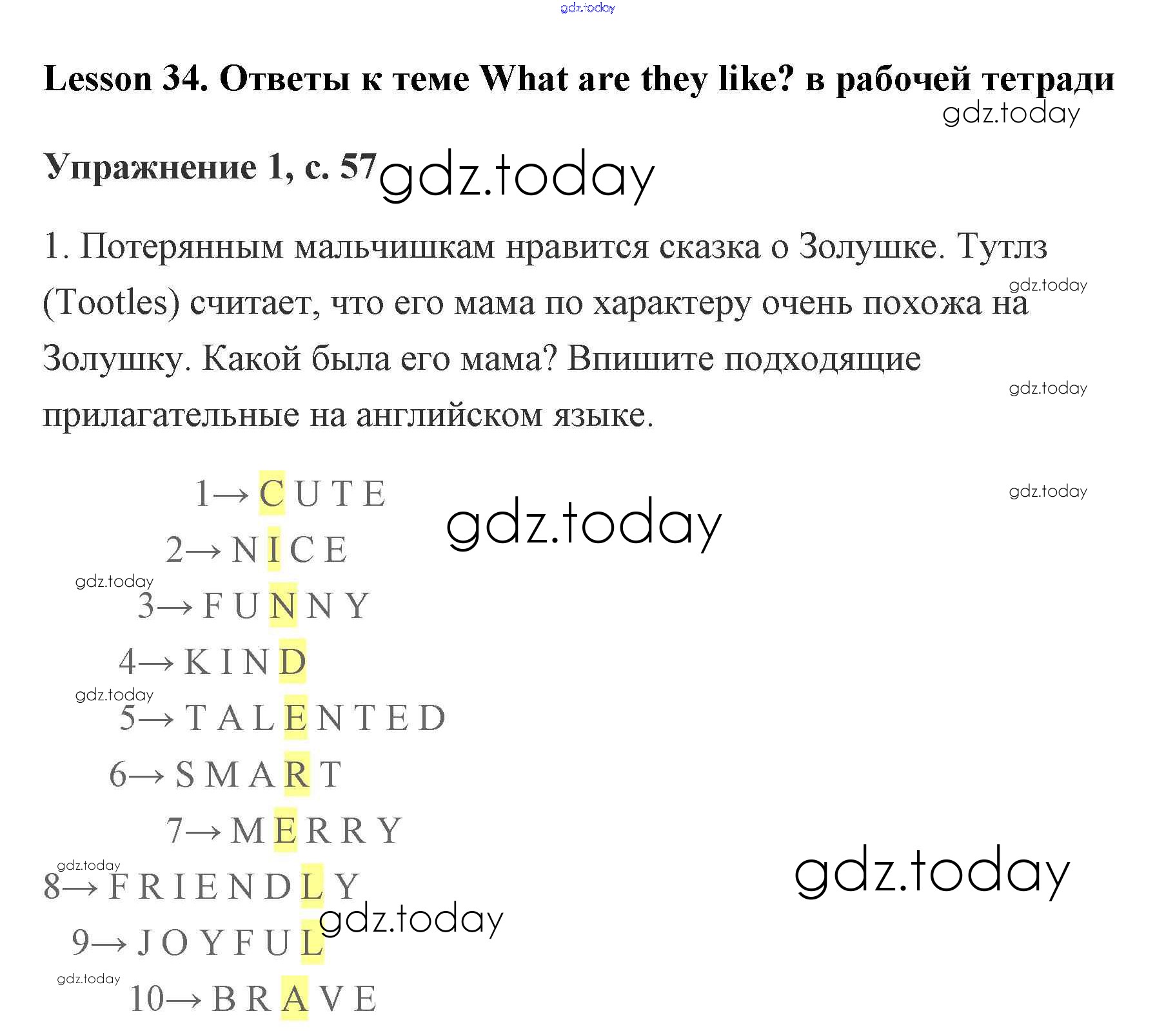 Ответы к Решение. Lesson 34. What are they like 57 Рабочей тетради по Английскому языку для 2 класса Кузовлев, Перегудова Просвещение 2011