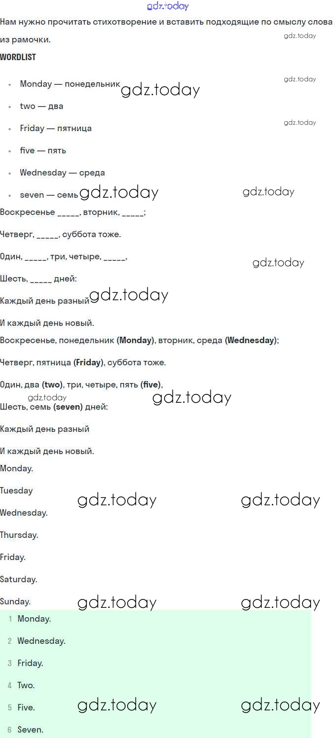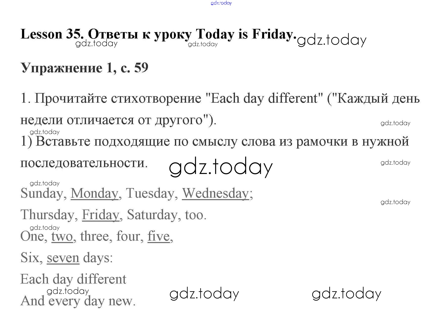 Ответы к Решение. Lesson 35. Today is Friday 59 Рабочей тетради по Английскому языку для 2 класса Кузовлев, Перегудова Просвещение 2011