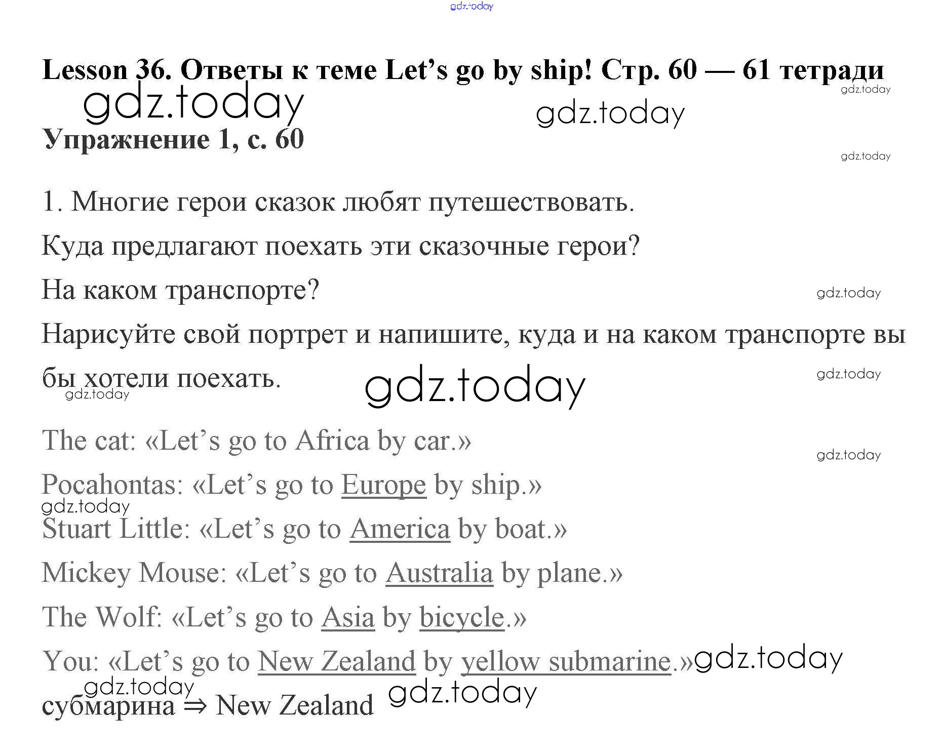 Ответы к Решение. Lesson 36. Let’s go by ship! 60 Рабочей тетради по Английскому языку для 2 класса Кузовлев, Перегудова Просвещение 2011