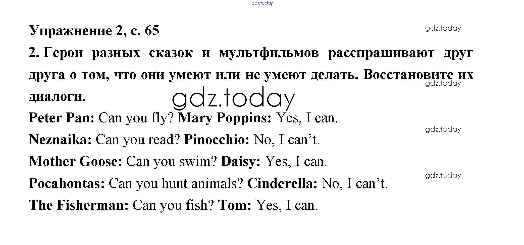Ответы к Решение. Lesson 38. Can you swim 65 Рабочей тетради по Английскому языку для 2 класса Кузовлев, Перегудова Просвещение 2011