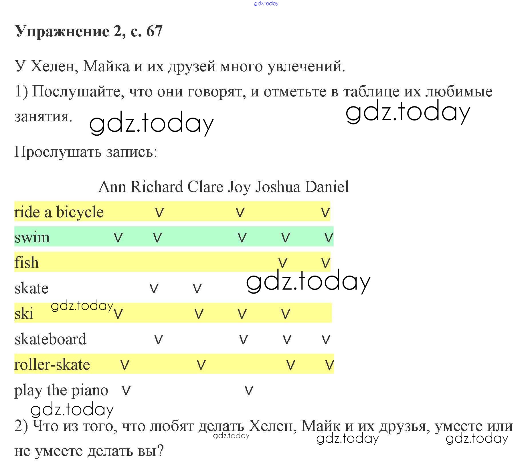 Ответы к Решение. Lesson 39. We can skateboard very well 67 Рабочей тетради по Английскому языку для 2 класса Кузовлев, Перегудова Просвещение 2011
