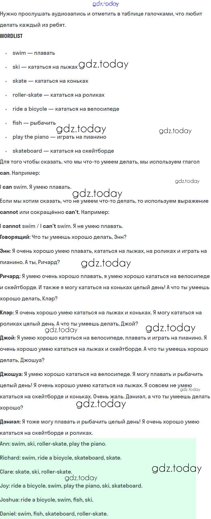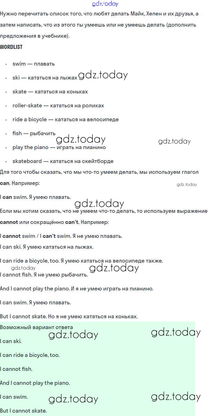 Решение. Lesson 38. Can you swim