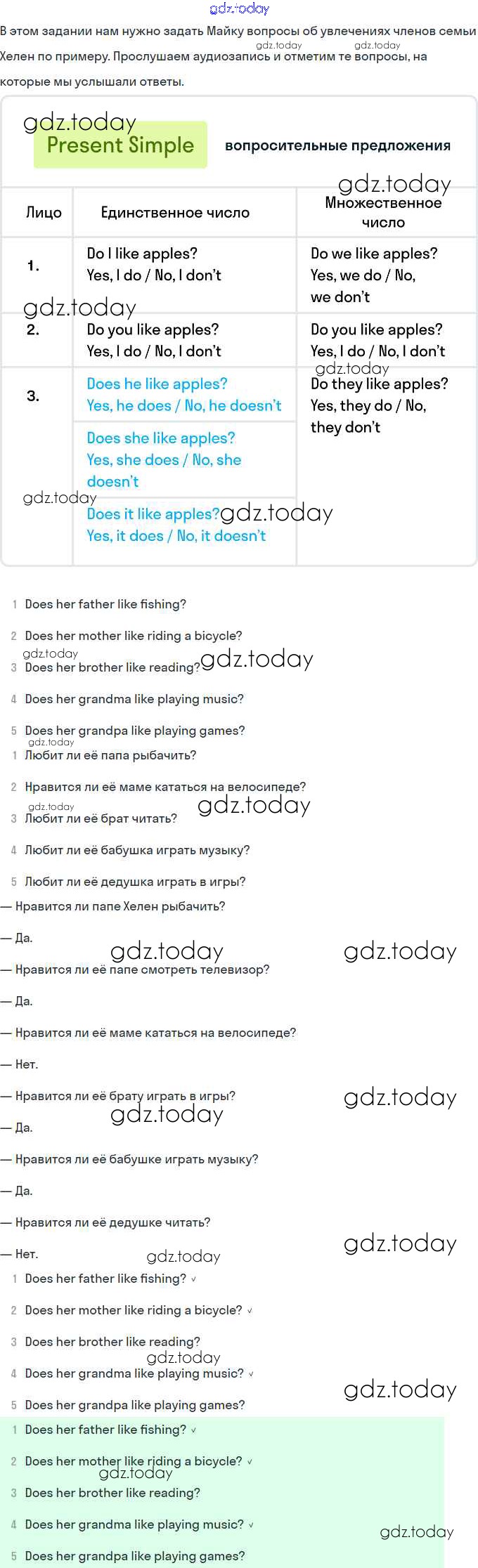 Решение. Lesson 49. Does Hellen like reading