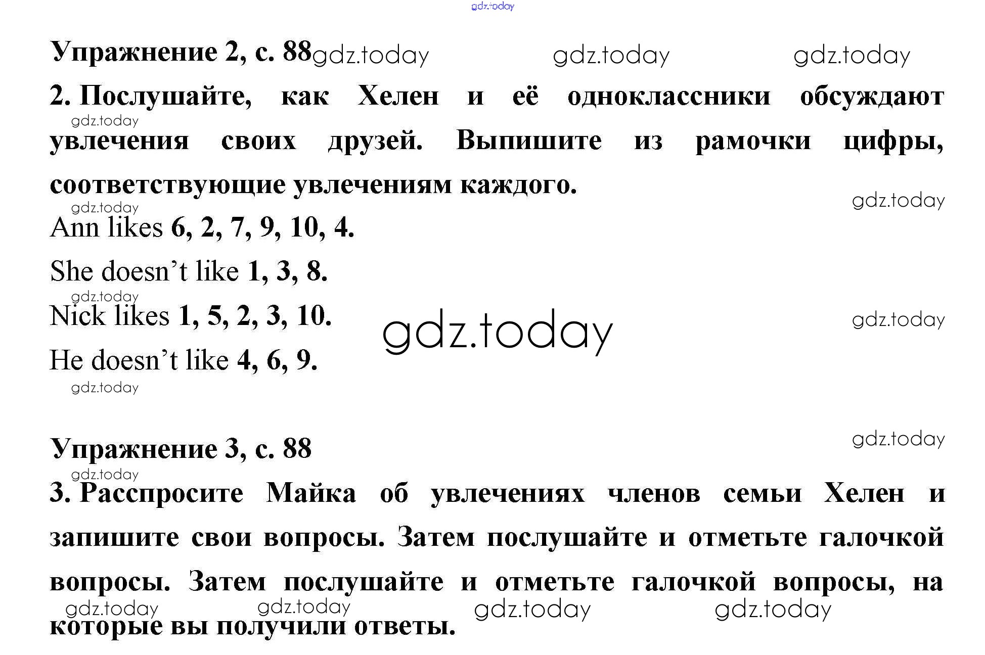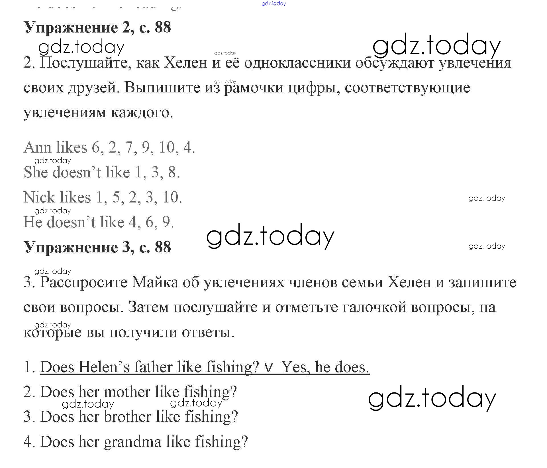 Ответы к Решение. Lesson 49. Does Hellen like reading 88 Рабочей тетради по Английскому языку для 2 класса Кузовлев, Перегудова Просвещение 2011