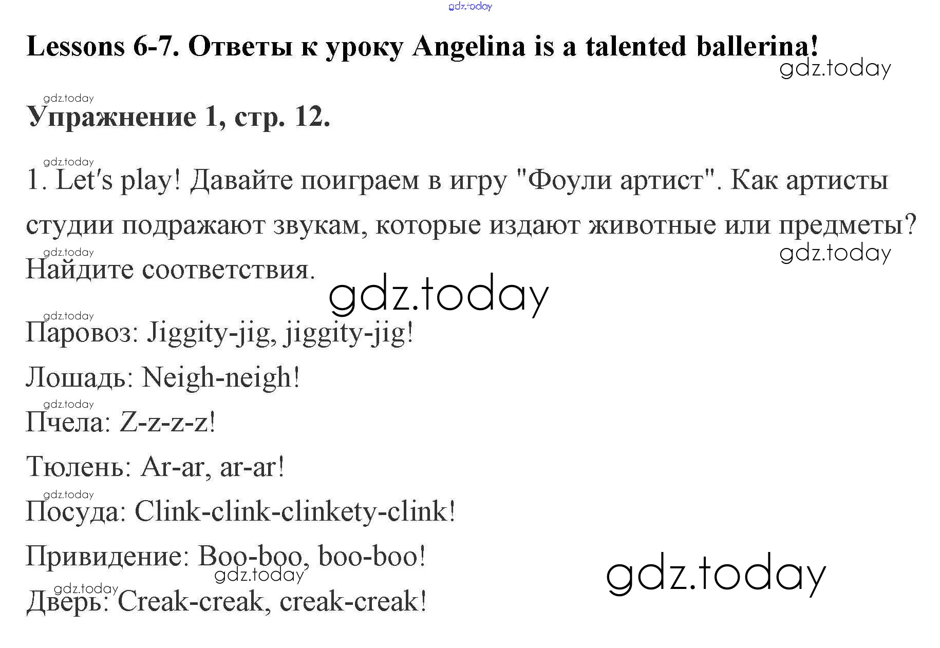 Ответы к Решение. Lesson 6-7. Angelina is a talented ballerina! 12 Рабочей тетради по Английскому языку для 2 класса Кузовлев, Перегудова Просвещение 2011