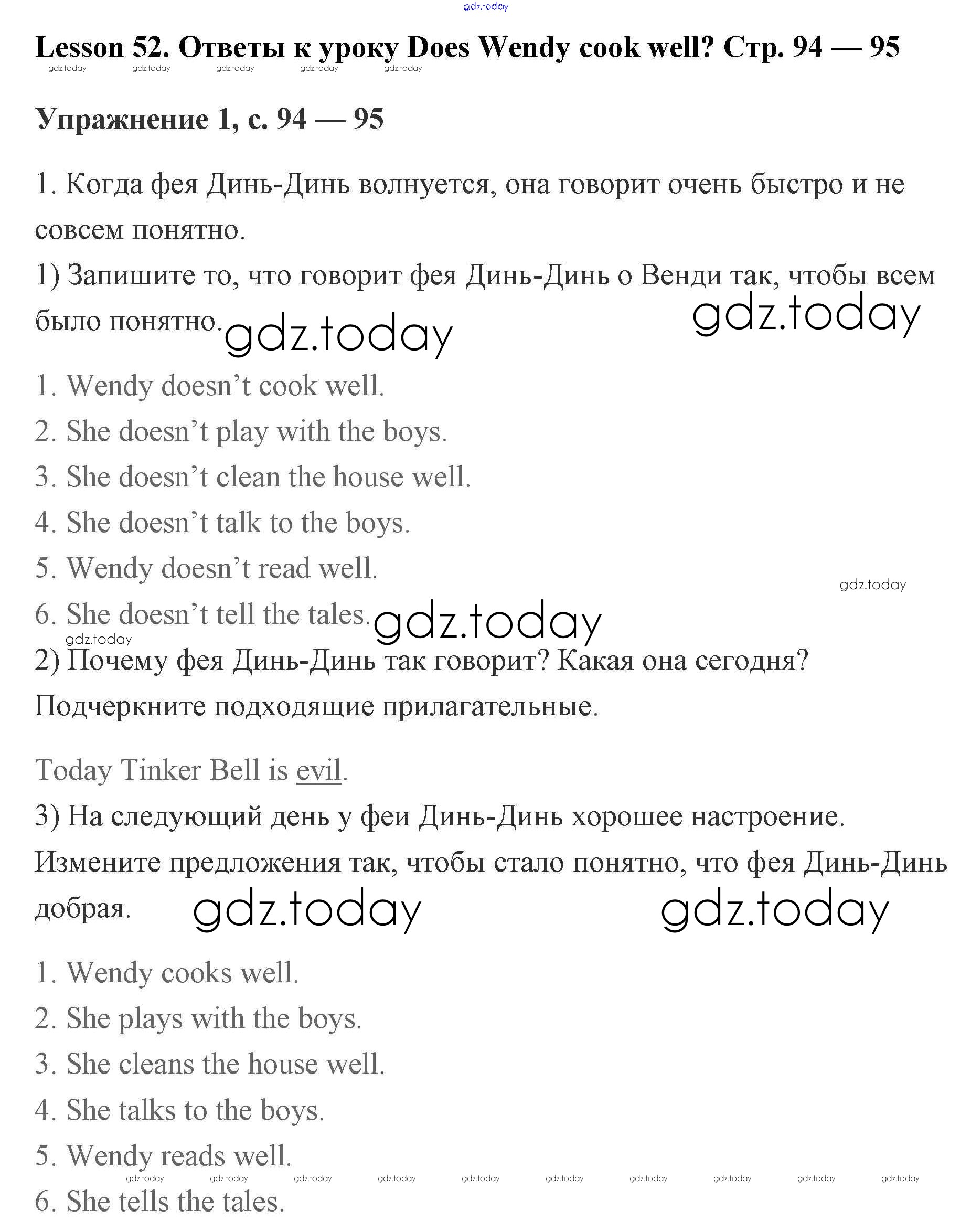 Ответы к Решение. Lesson 52. Does Wendy cook well 94 Рабочей тетради по Английскому языку для 2 класса Кузовлев, Перегудова Просвещение 2011