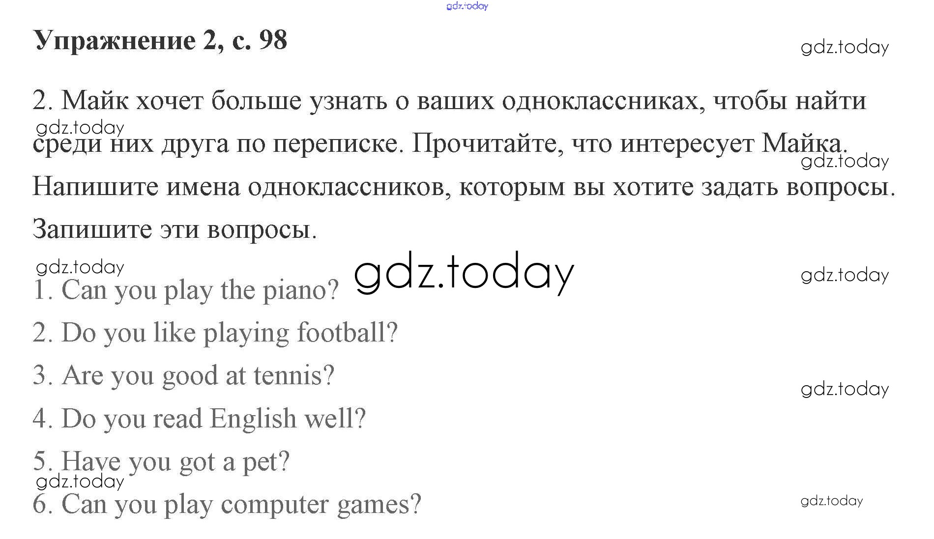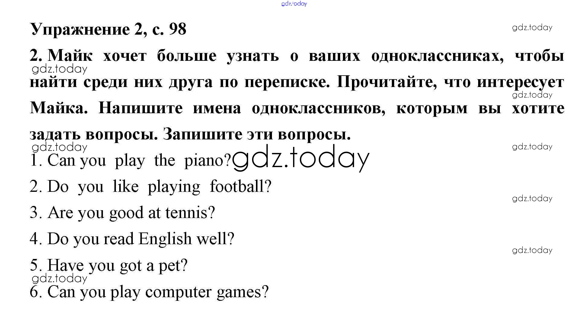 Ответы к Решение. Lesson 54. What do you like (Урок повторения) 98 Рабочей тетради по Английскому языку для 2 класса Кузовлев, Перегудова Просвещение 2011