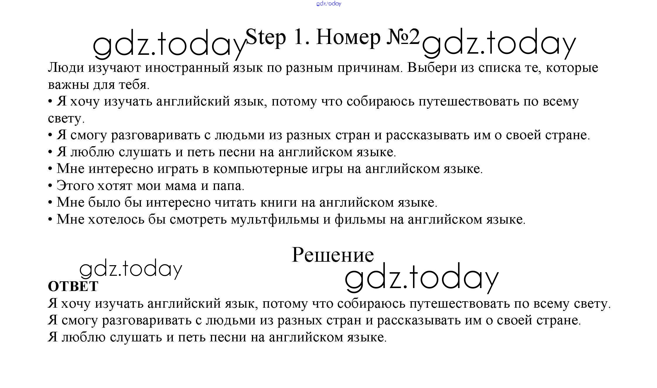 На страницах сайта gdz.today вы найдете учебный и вспомогательный материал, направленный на улучшения знаний школьной программы. ГДЗ - онлайн мир знаний Step 1 Решение. Часть 1 2 Учебнику по Английскому языку для 2 класса Афанасьева, Михеева Дрофа Rainbow 2017