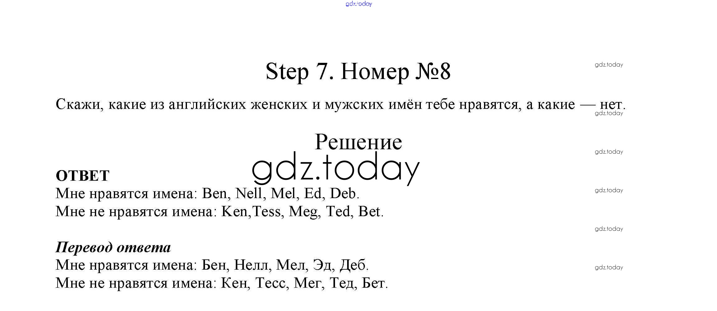 Ответы к Step 7 Решение. Часть 1 8 Учебнику по Английскому языку для 2 класса Афанасьева, Михеева Дрофа Rainbow 2017
