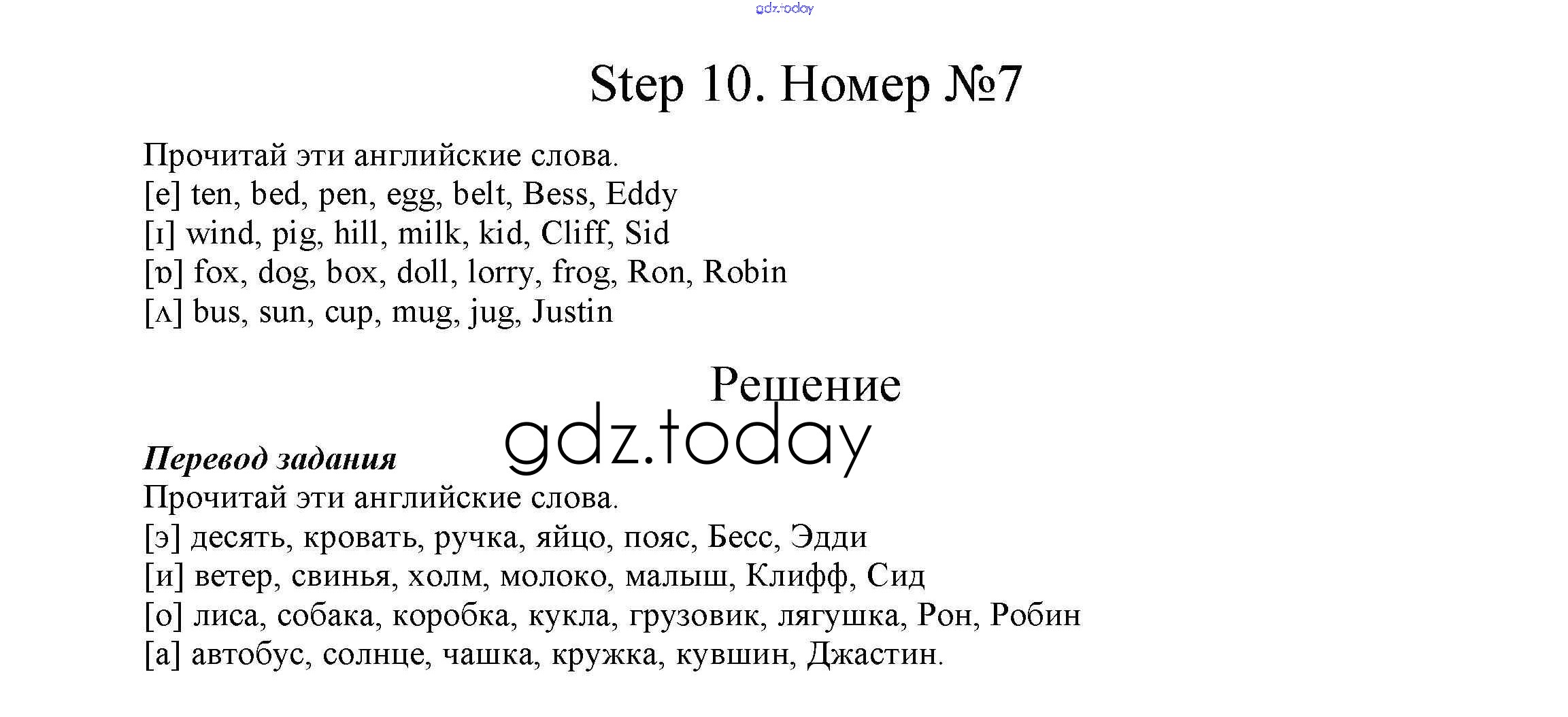 Ответы к Step 10 Решение. Часть 1 7 Учебнику по Английскому языку для 2 класса Афанасьева, Михеева Дрофа Rainbow 2017