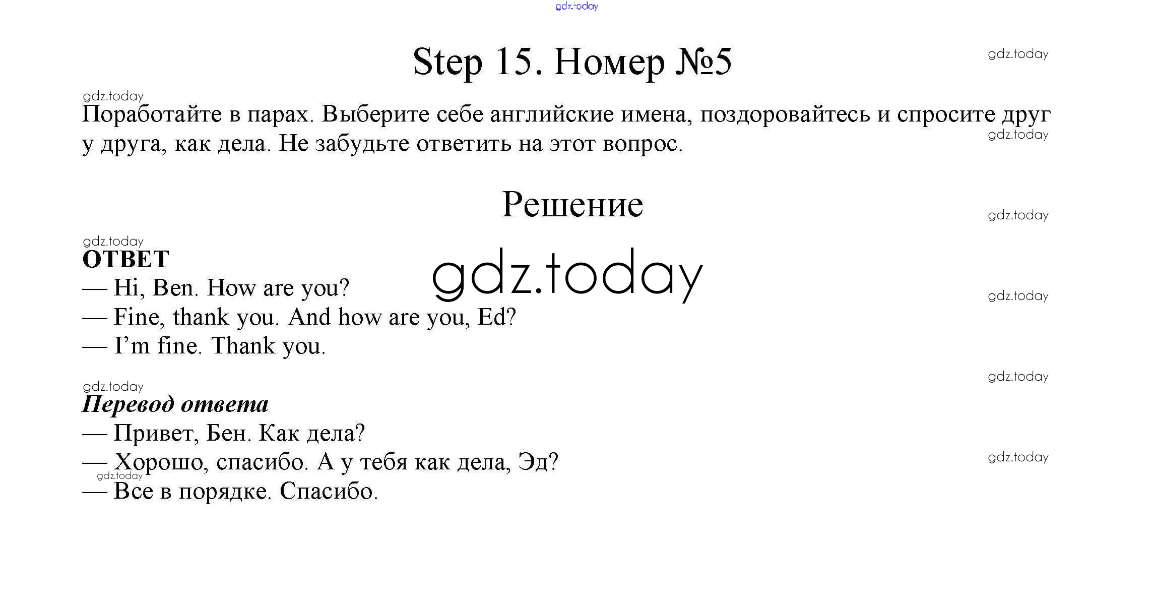 Ответы к Step 15 Решение. Часть 1 5 Учебнику по Английскому языку для 2 класса Афанасьева, Михеева Дрофа Rainbow 2017