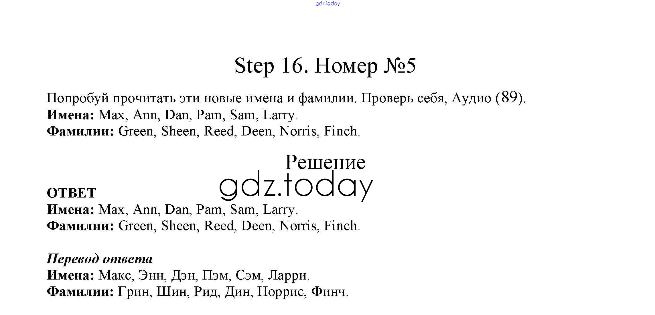 Ответы к Step 16 Решение. Часть 1 5 Учебнику по Английскому языку для 2 класса Афанасьева, Михеева Дрофа Rainbow 2017
