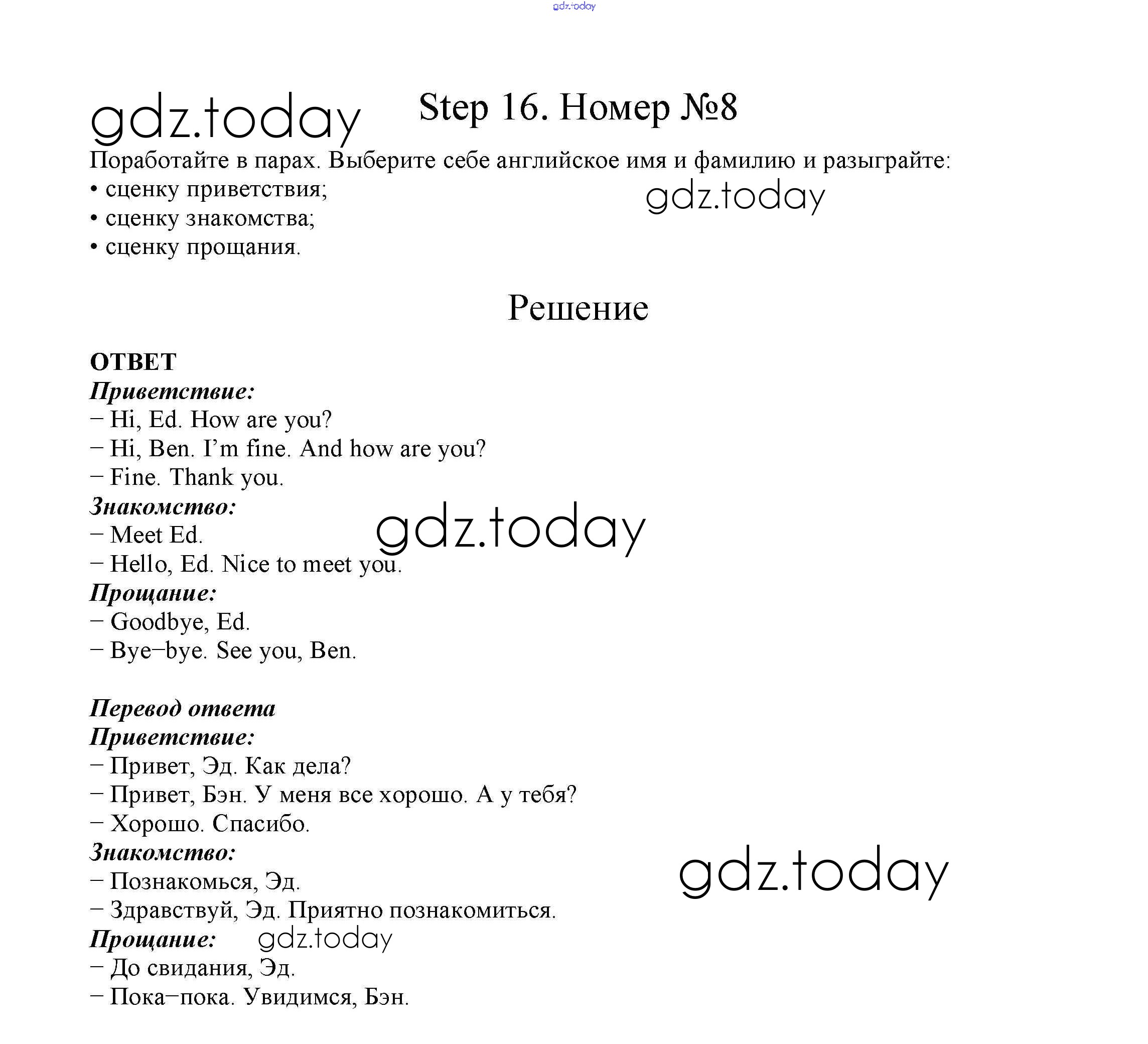 Ответы к Step 16 Решение. Часть 1 8 Учебнику по Английскому языку для 2 класса Афанасьева, Михеева Дрофа Rainbow 2017