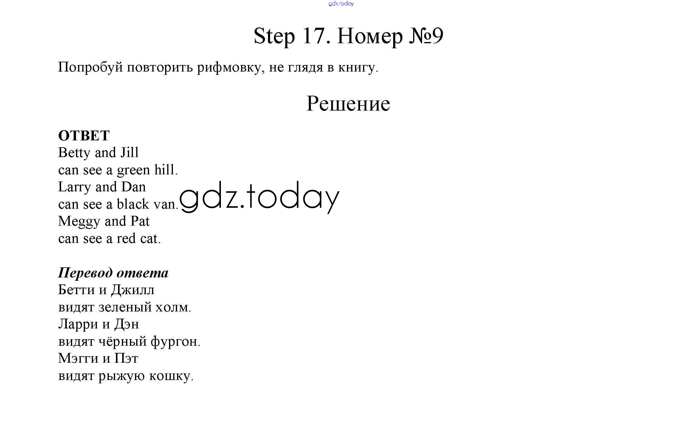 Ответы к Step 17 Решение. Часть 1 9 Учебнику по Английскому языку для 2 класса Афанасьева, Михеева Дрофа Rainbow 2017