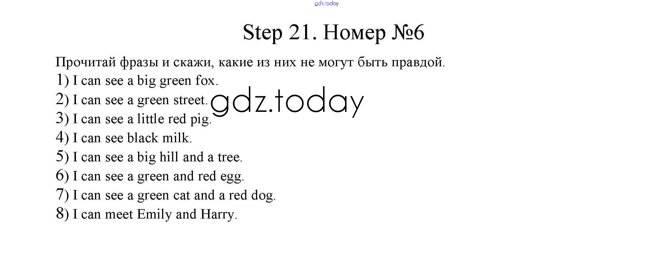 На страницах сайта gdz.today вы найдете учебный и вспомогательный материал, направленный на улучшения знаний школьной программы. ГДЗ - онлайн мир знаний Step 21 Решение. Часть 1 6 Учебнику по Английскому языку для 2 класса Афанасьева, Михеева Дрофа Rainbow 2017
