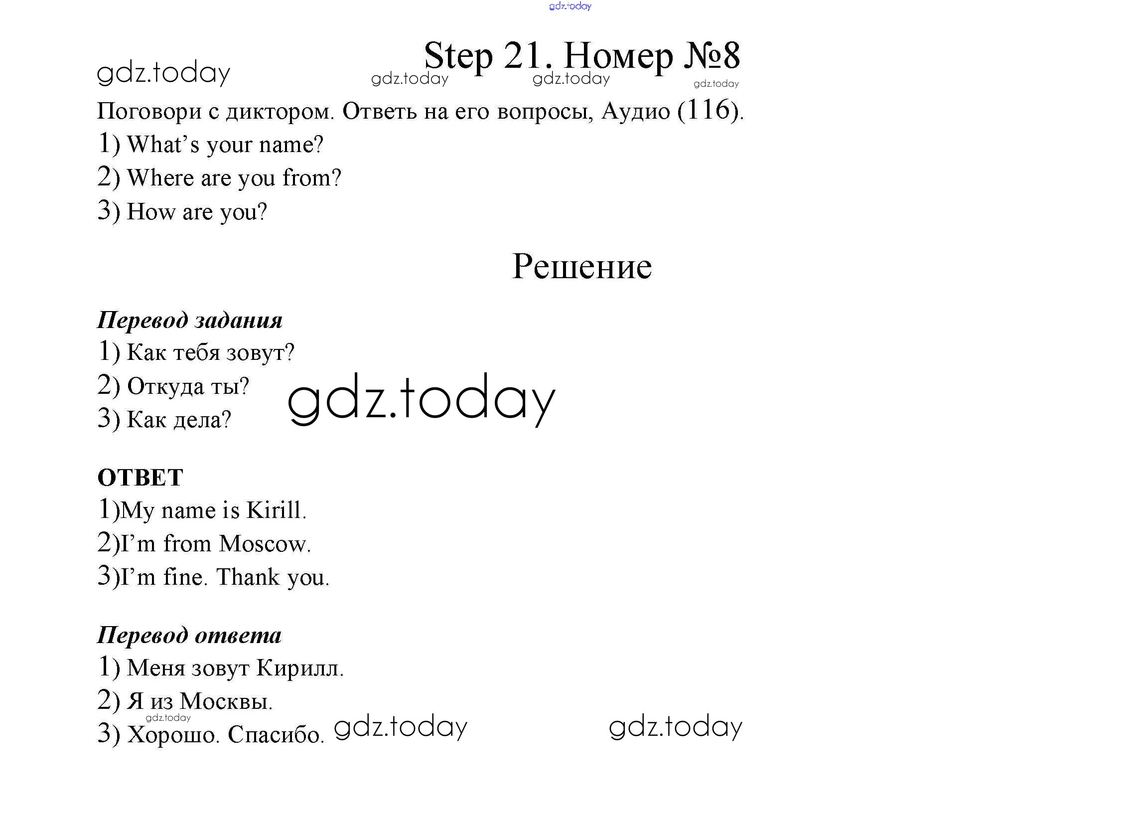 Ответы к Step 21 Решение. Часть 1 8 Учебнику по Английскому языку для 2 класса Афанасьева, Михеева Дрофа Rainbow 2017