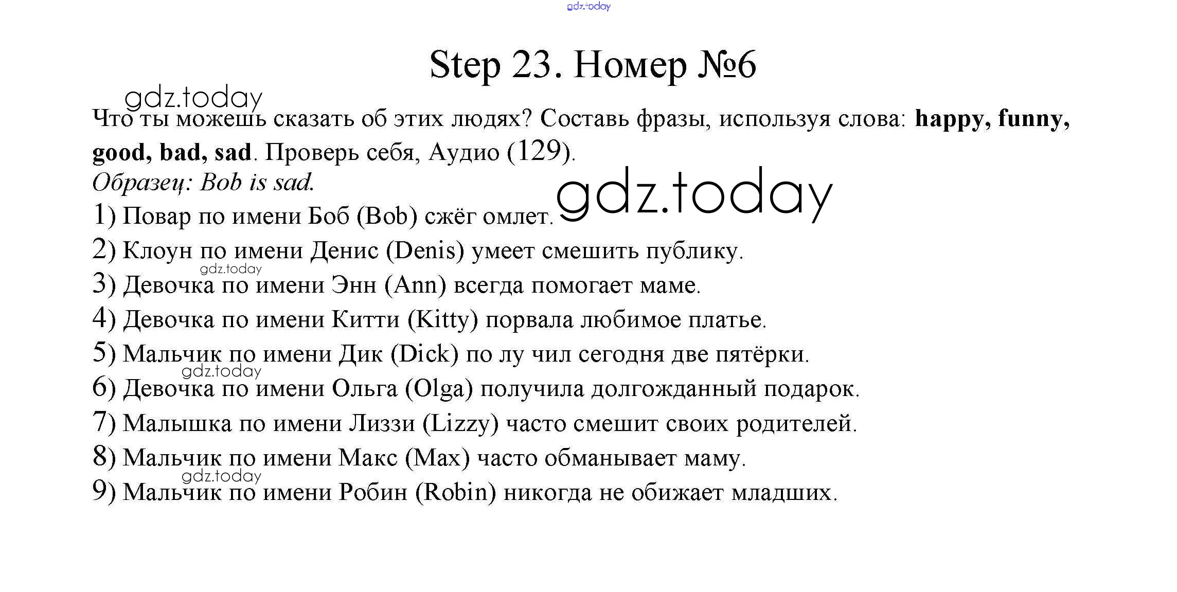 На страницах сайта gdz.today вы найдете учебный и вспомогательный материал, направленный на улучшения знаний школьной программы. ГДЗ - онлайн мир знаний Step 23 Решение. Часть 1 6 Учебнику по Английскому языку для 2 класса Афанасьева, Михеева Дрофа Rainbow 2017