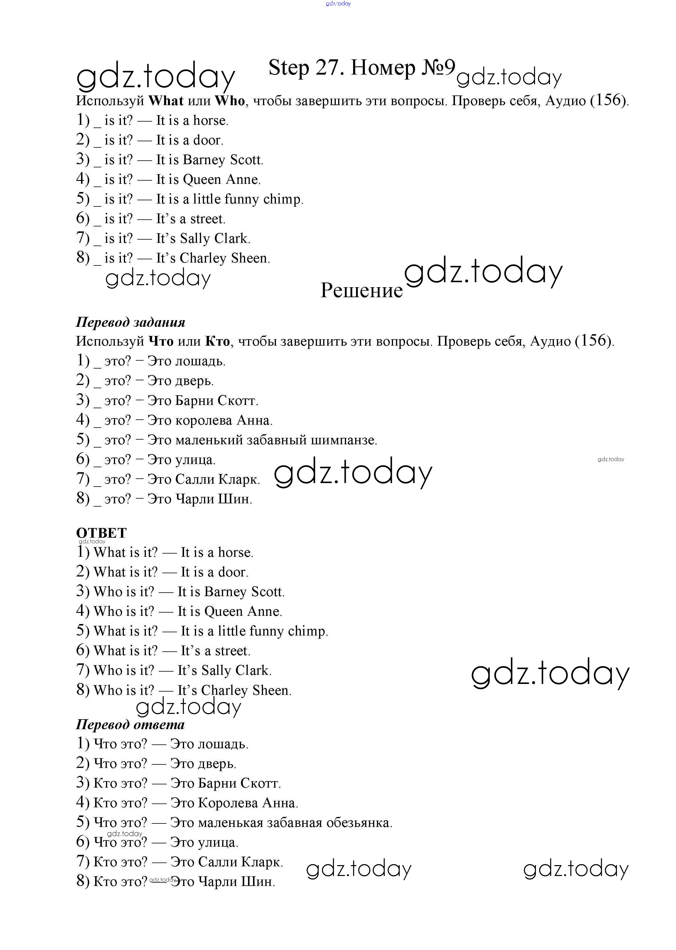 Ответы к Step 27 Решение. Часть 1 9 Учебнику по Английскому языку для 2 класса Афанасьева, Михеева Дрофа Rainbow 2017