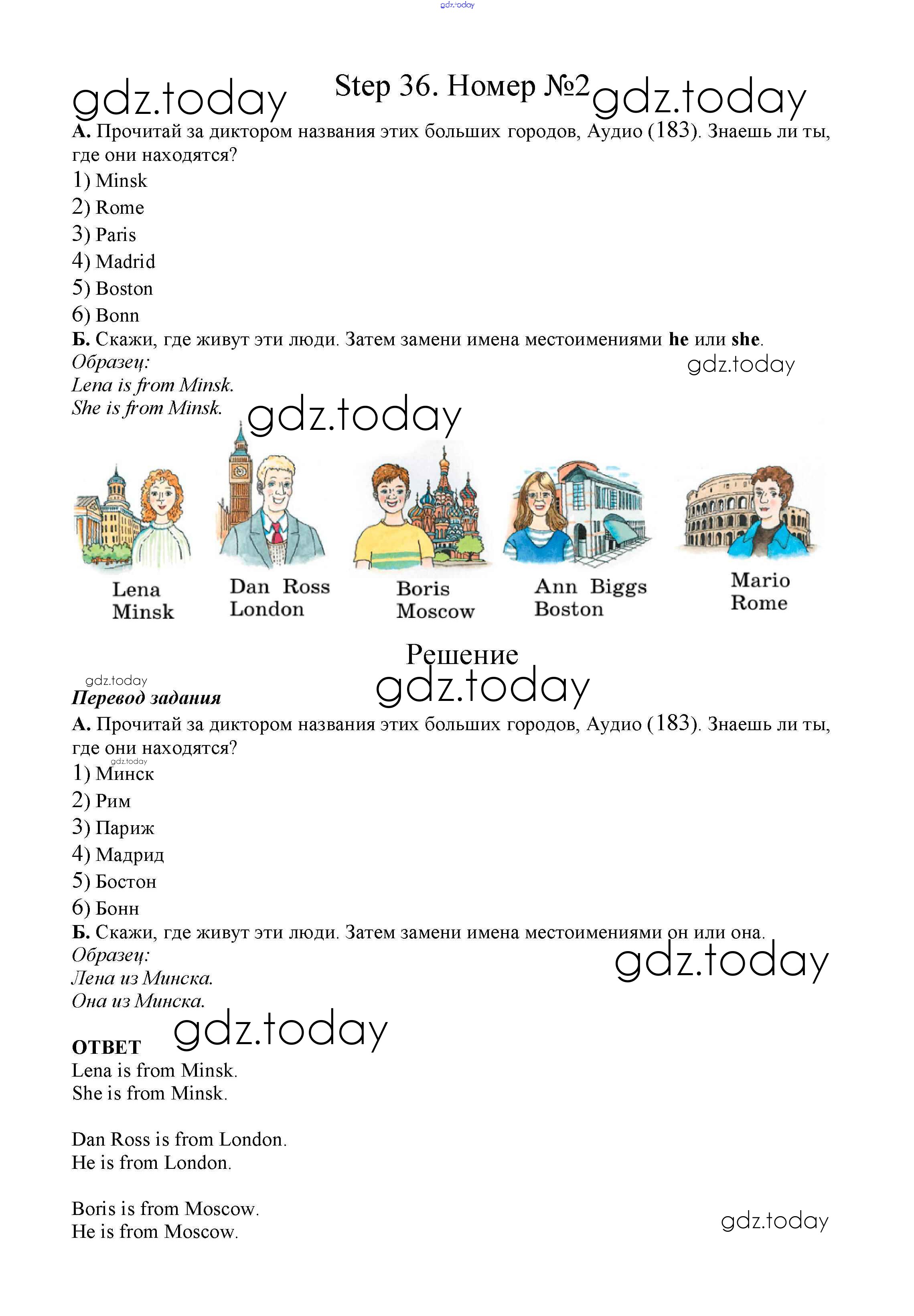 На страницах сайта gdz.today вы найдете учебный и вспомогательный материал, направленный на улучшения знаний школьной программы. ГДЗ - онлайн мир знаний Step 36 Решение. Часть 2 2 Учебнику по Английскому языку для 2 класса Афанасьева, Михеева Дрофа Rainbow 2017