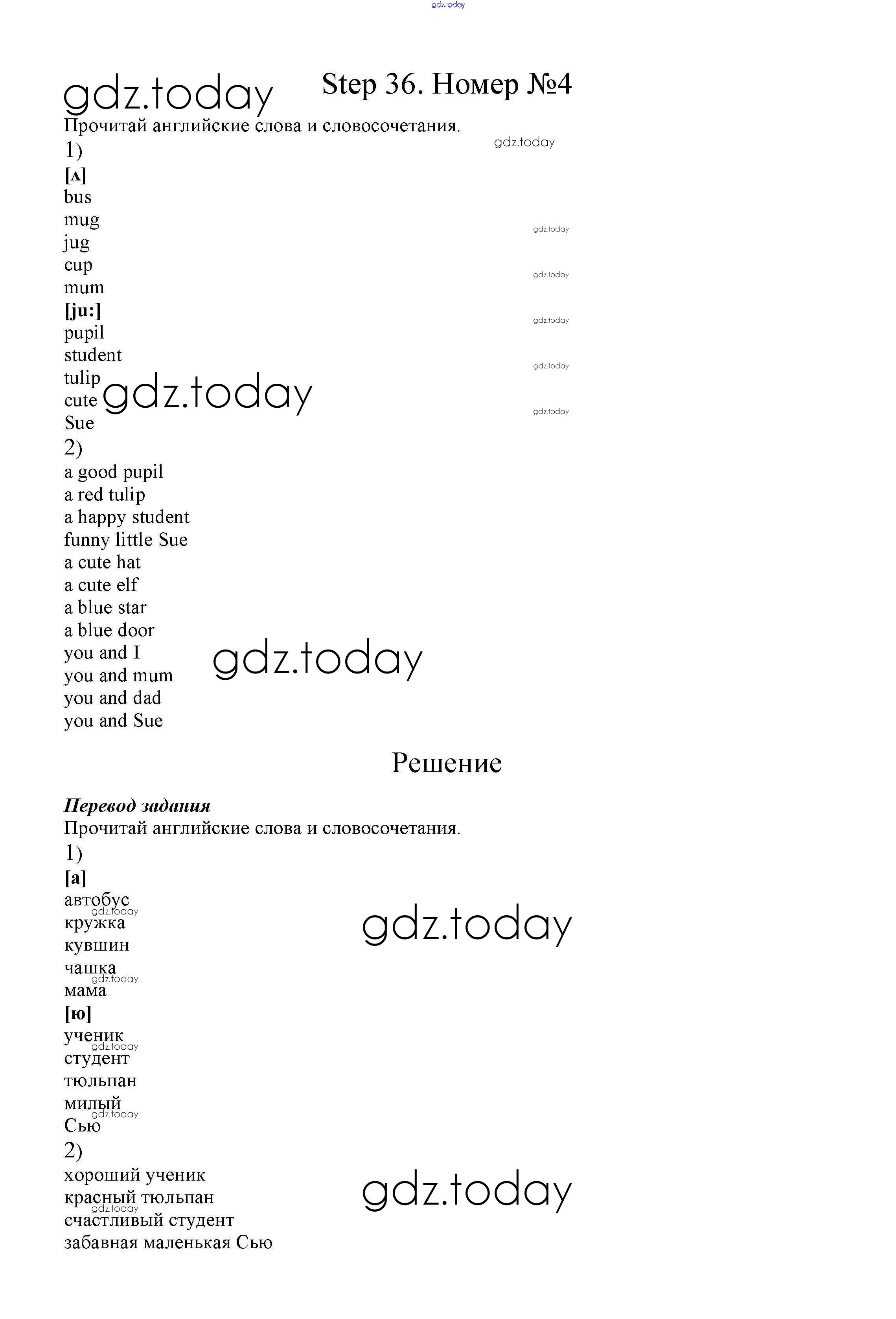 Ответы к Step 36 Решение. Часть 2 4 Учебнику по Английскому языку для 2 класса Афанасьева, Михеева Дрофа Rainbow 2017