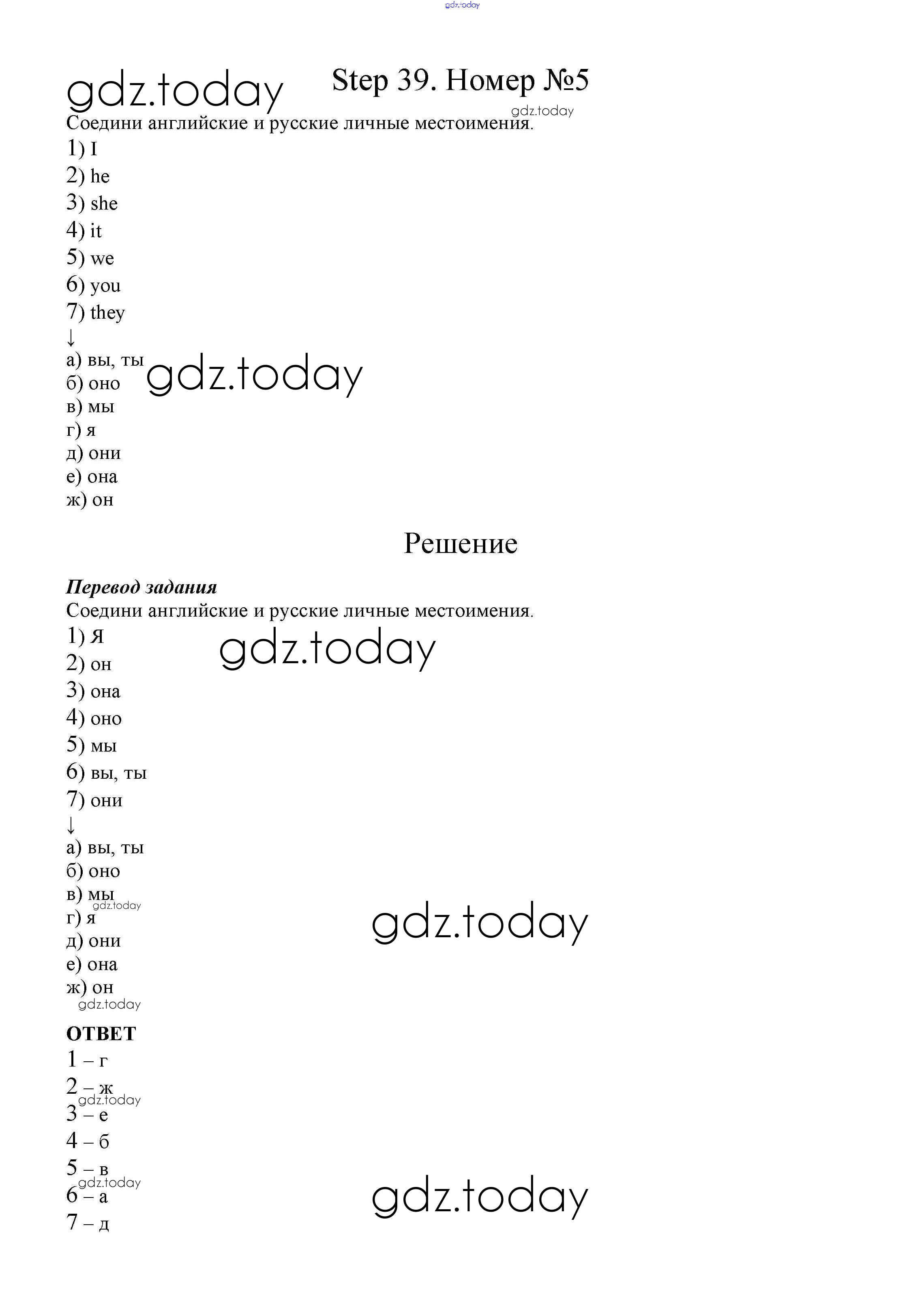 Ответы к Step 39 Решение. Часть 2 5 Учебнику по Английскому языку для 2 класса Афанасьева, Михеева Дрофа Rainbow 2017