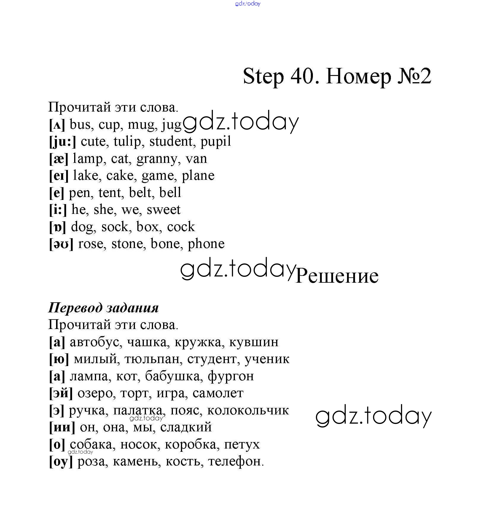 На страницах сайта gdz.today вы найдете учебный и вспомогательный материал, направленный на улучшения знаний школьной программы. ГДЗ - онлайн мир знаний Step 40 Решение. Часть 2 2 Учебнику по Английскому языку для 2 класса Афанасьева, Михеева Дрофа Rainbow 2017
