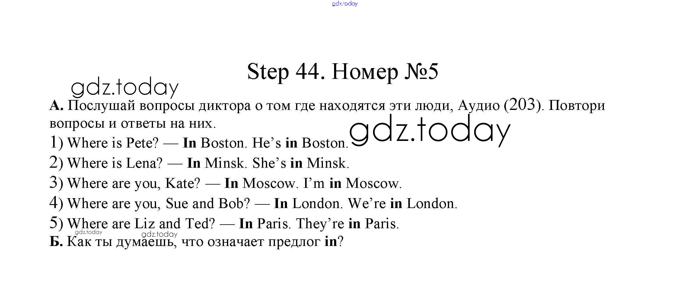 На страницах сайта gdz.today вы найдете учебный и вспомогательный материал, направленный на улучшения знаний школьной программы. ГДЗ - онлайн мир знаний Step 44 Решение. Часть 2 5 Учебнику по Английскому языку для 2 класса Афанасьева, Михеева Дрофа Rainbow 2017