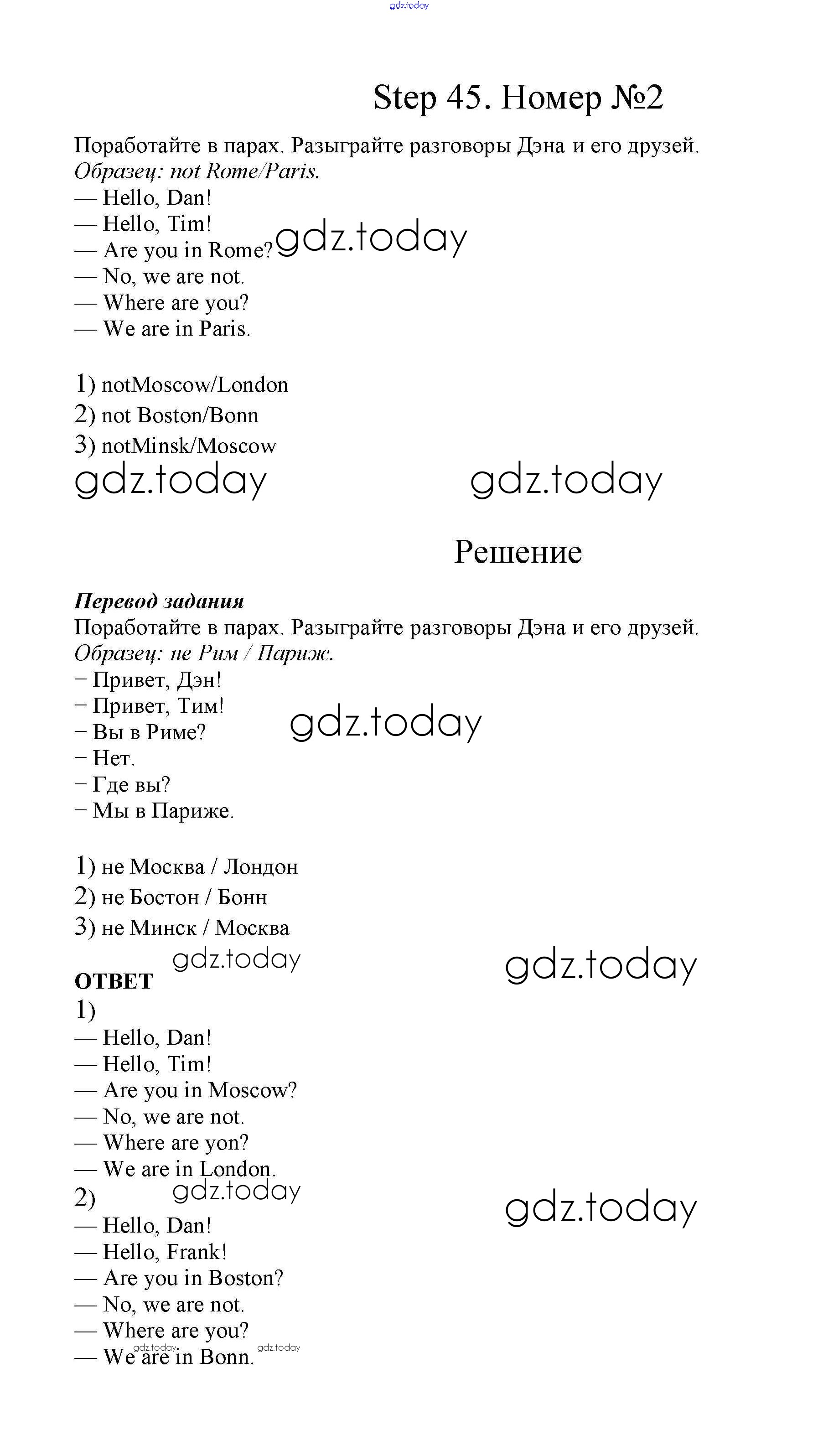 На страницах сайта gdz.today вы найдете учебный и вспомогательный материал, направленный на улучшения знаний школьной программы. ГДЗ - онлайн мир знаний Step 45 Решение. Часть 2 2 Учебнику по Английскому языку для 2 класса Афанасьева, Михеева Дрофа Rainbow 2017