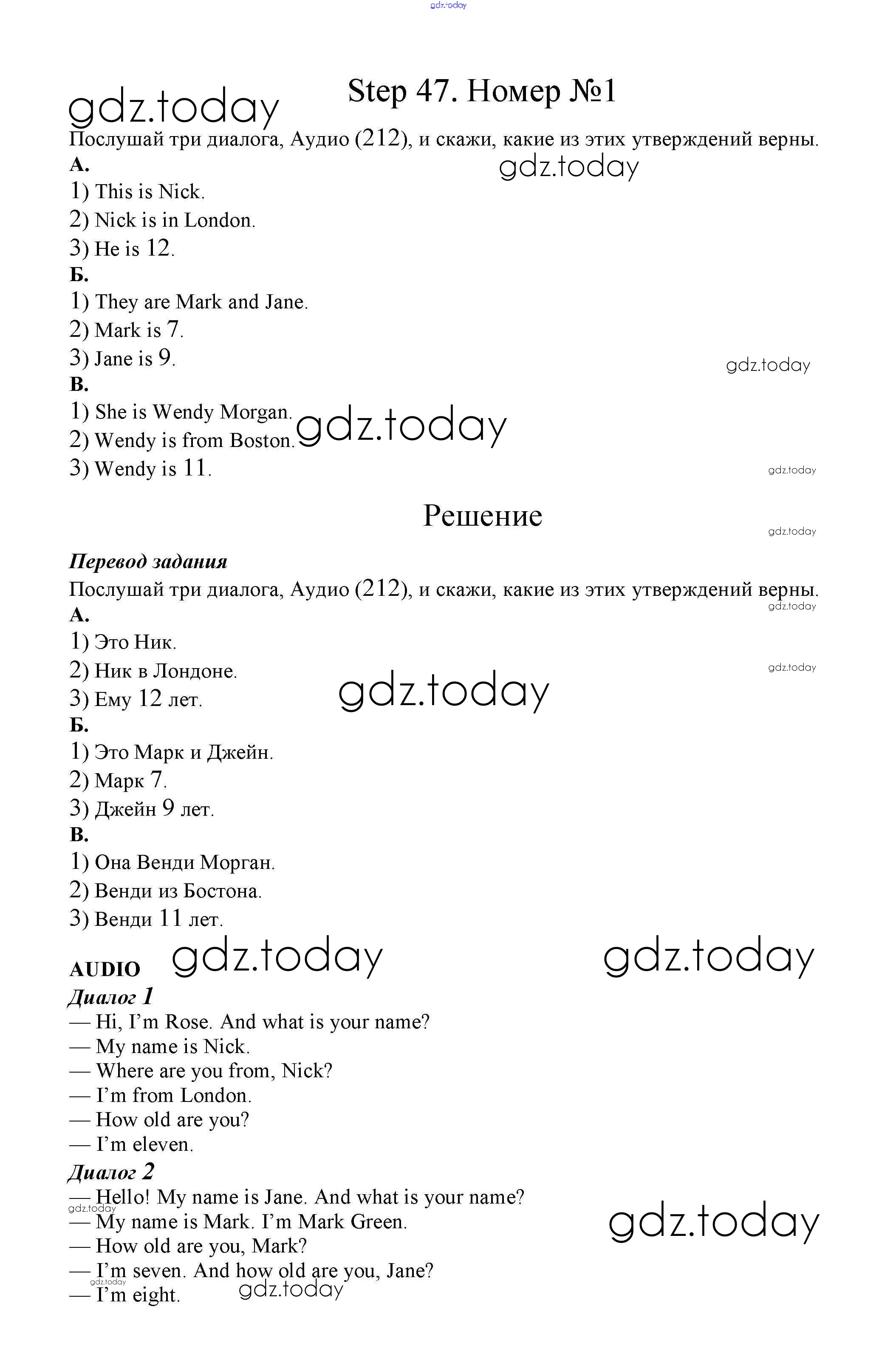 Ответы к Step 47 Решение. Часть 2 1 Учебнику по Английскому языку для 2 класса Афанасьева, Михеева Дрофа Rainbow 2017