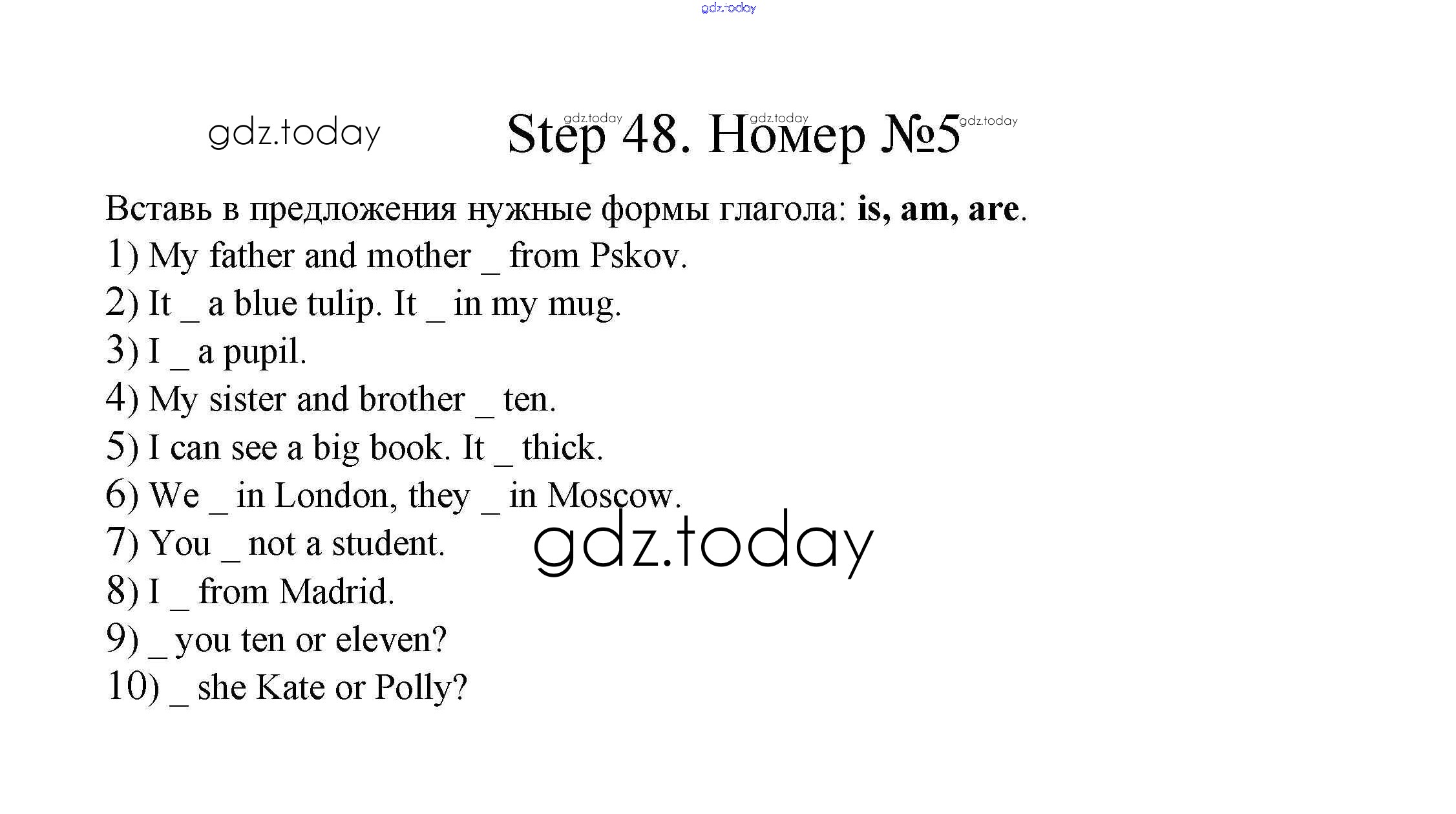 На страницах сайта gdz.today вы найдете учебный и вспомогательный материал, направленный на улучшения знаний школьной программы. ГДЗ - онлайн мир знаний Step 48 Решение. Часть 2 5 Учебнику по Английскому языку для 2 класса Афанасьева, Михеева Дрофа Rainbow 2017