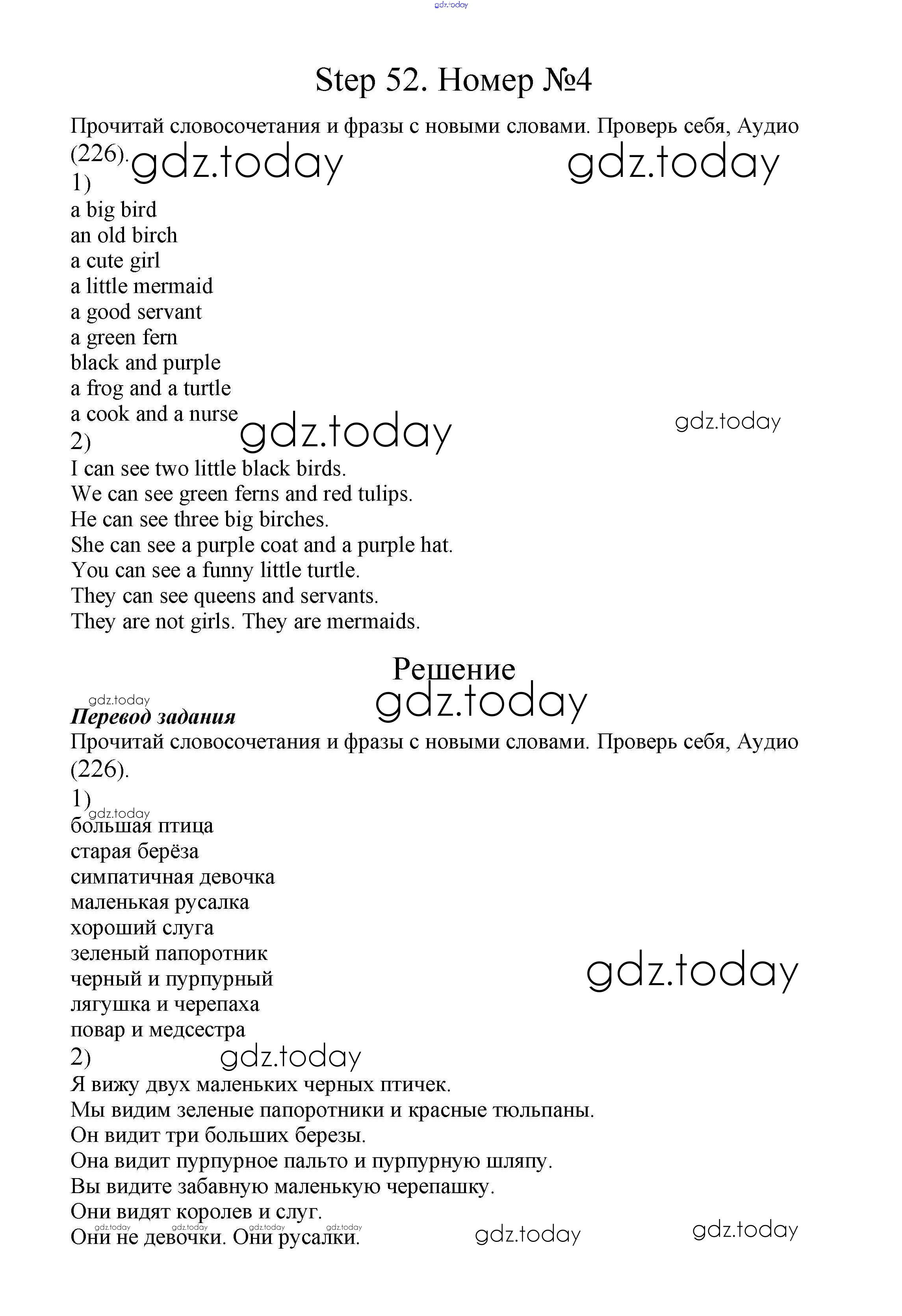 Ответы к Step 52 Решение. Часть 2 4 Учебнику по Английскому языку для 2 класса Афанасьева, Михеева Дрофа Rainbow 2017