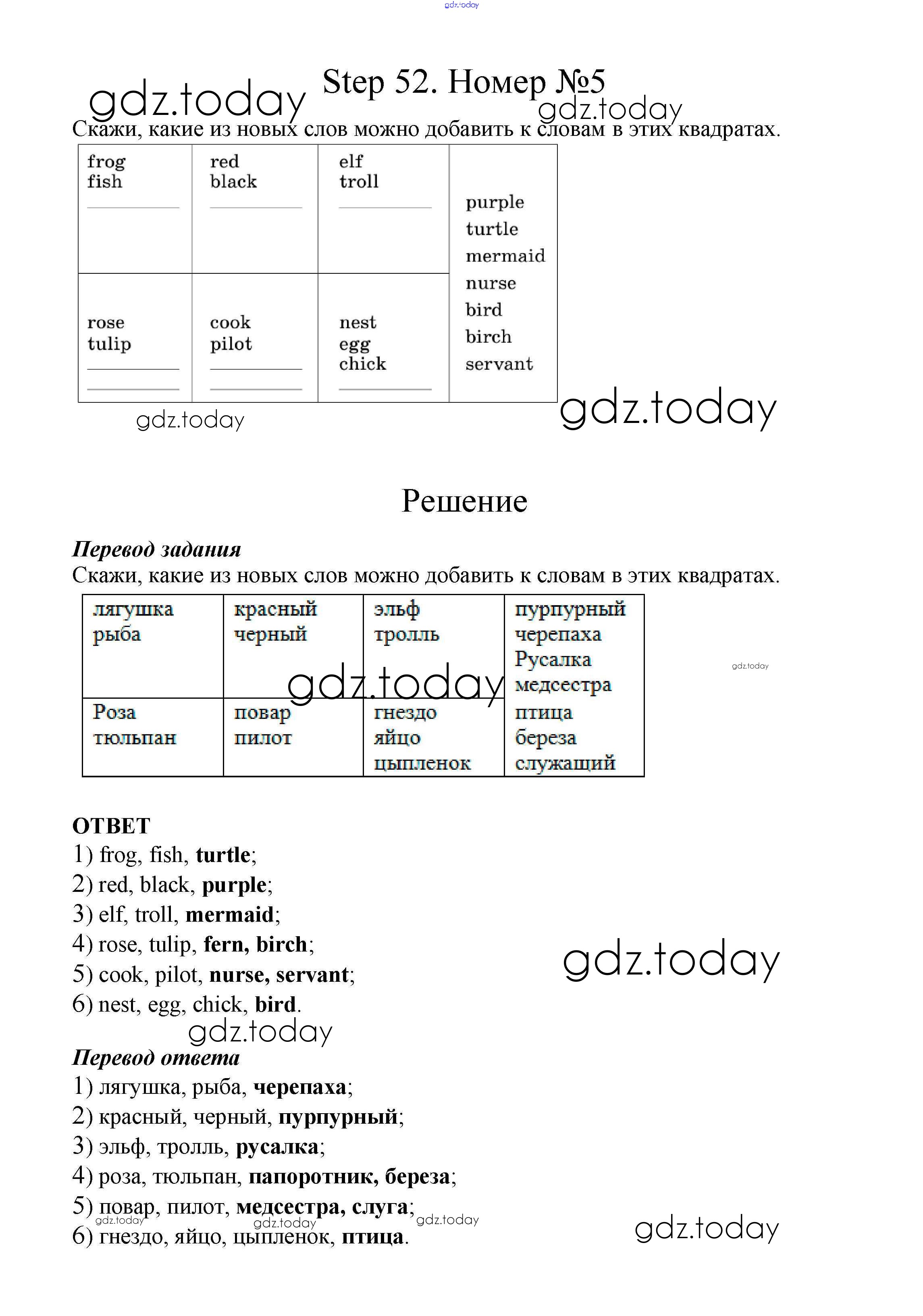 На страницах сайта gdz.today вы найдете учебный и вспомогательный материал, направленный на улучшения знаний школьной программы. ГДЗ - онлайн мир знаний Step 52 Решение. Часть 2 5 Учебнику по Английскому языку для 2 класса Афанасьева, Михеева Дрофа Rainbow 2017