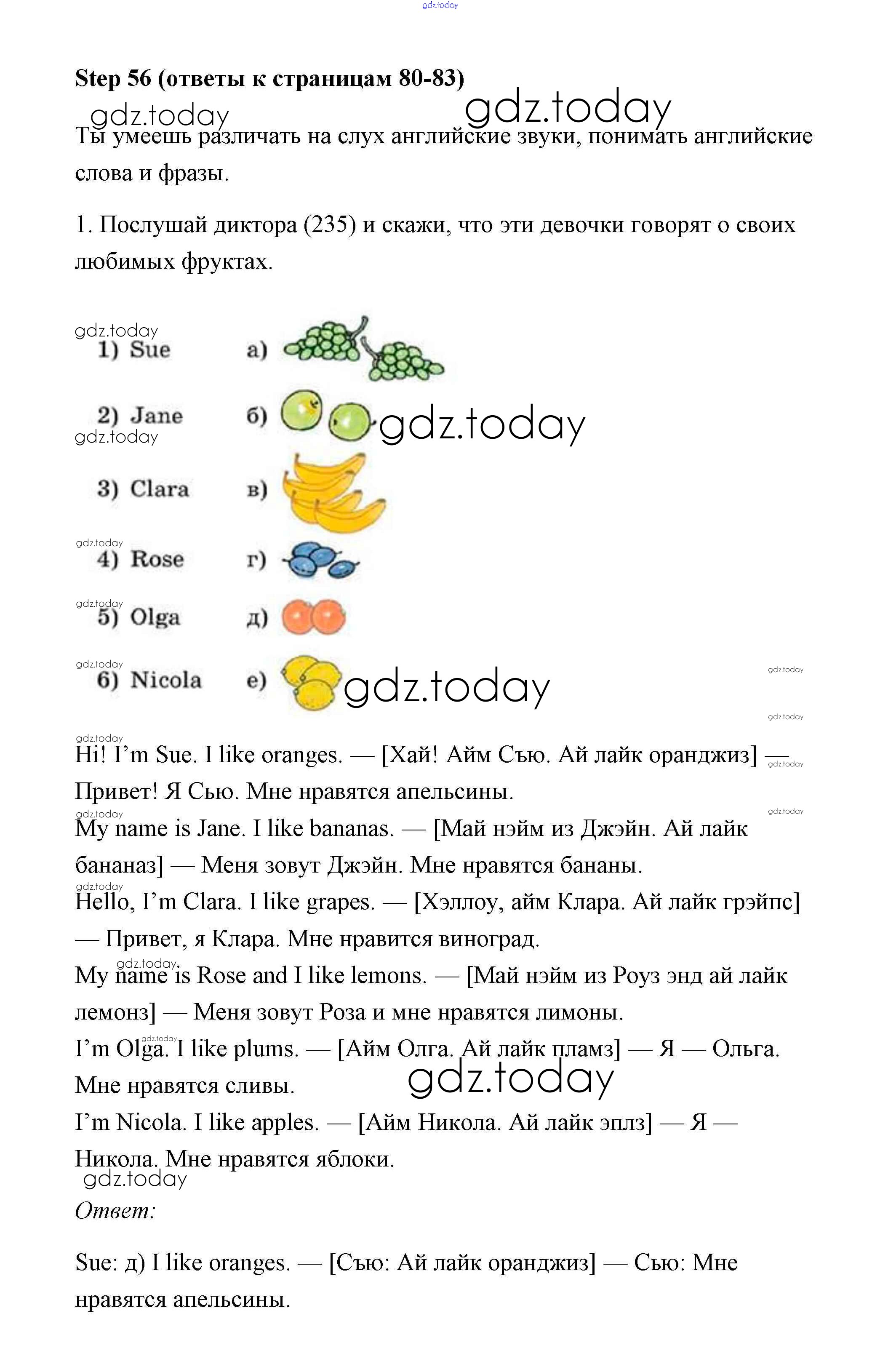 Ответы к Step 56 Решение. Часть 2 1 Учебнику по Английскому языку для 2 класса Афанасьева, Михеева Дрофа Rainbow 2017