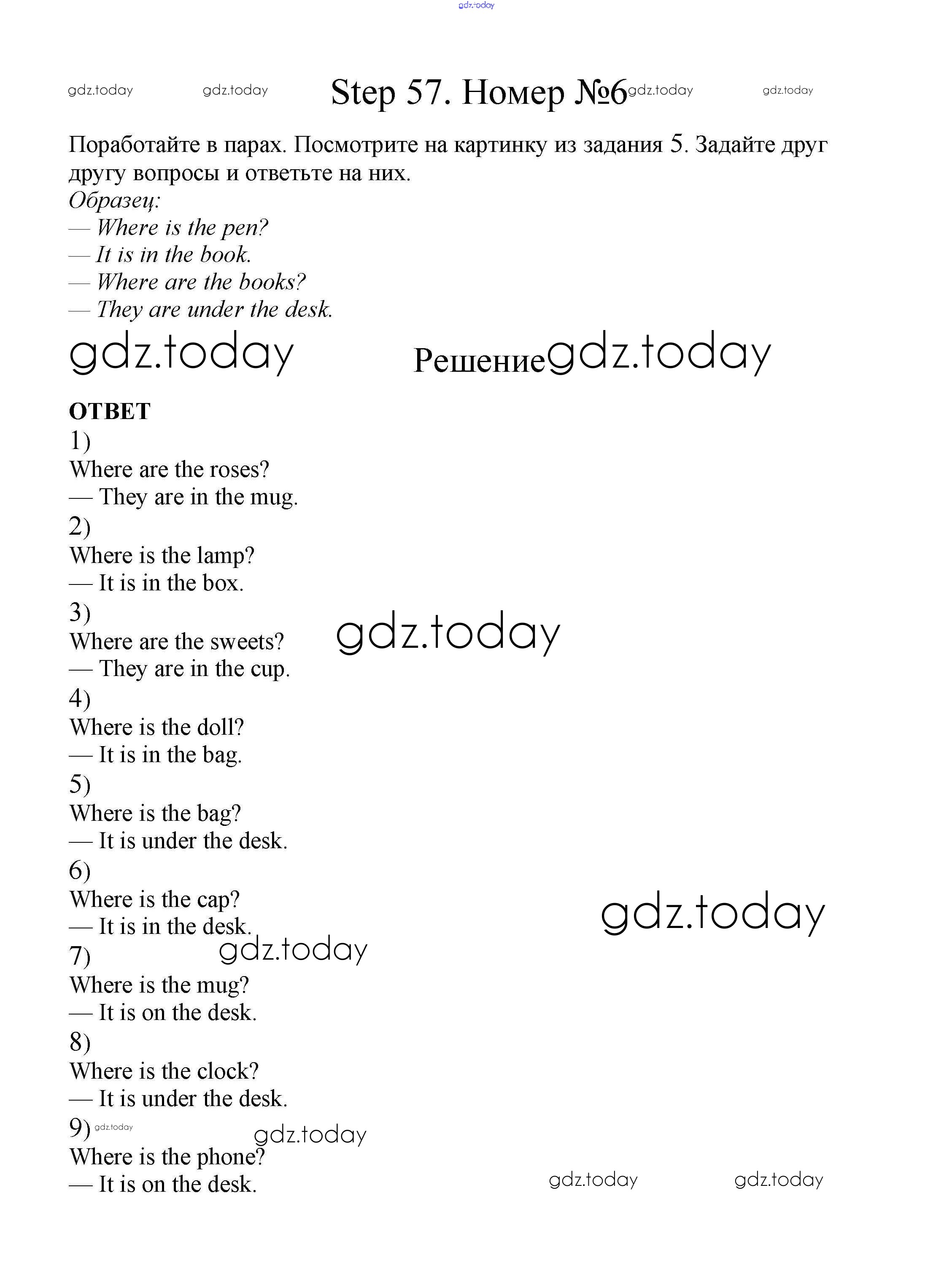 На страницах сайта gdz.today вы найдете учебный и вспомогательный материал, направленный на улучшения знаний школьной программы. ГДЗ - онлайн мир знаний Step 57 Решение. Часть 2 6 Учебнику по Английскому языку для 2 класса Афанасьева, Михеева Дрофа Rainbow 2017