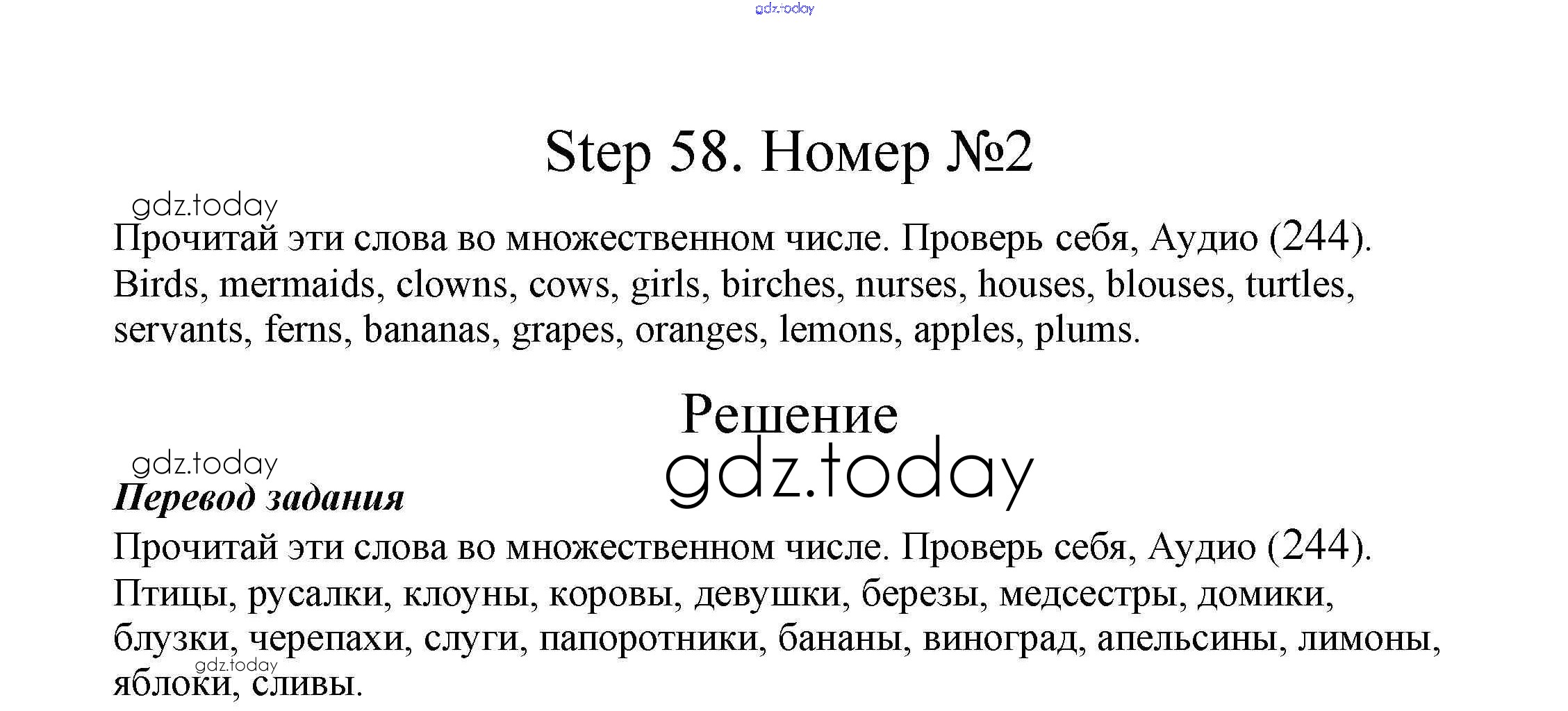 На страницах сайта gdz.today вы найдете учебный и вспомогательный материал, направленный на улучшения знаний школьной программы. ГДЗ - онлайн мир знаний Step 58 Решение. Часть 2 2 Учебнику по Английскому языку для 2 класса Афанасьева, Михеева Дрофа Rainbow 2017