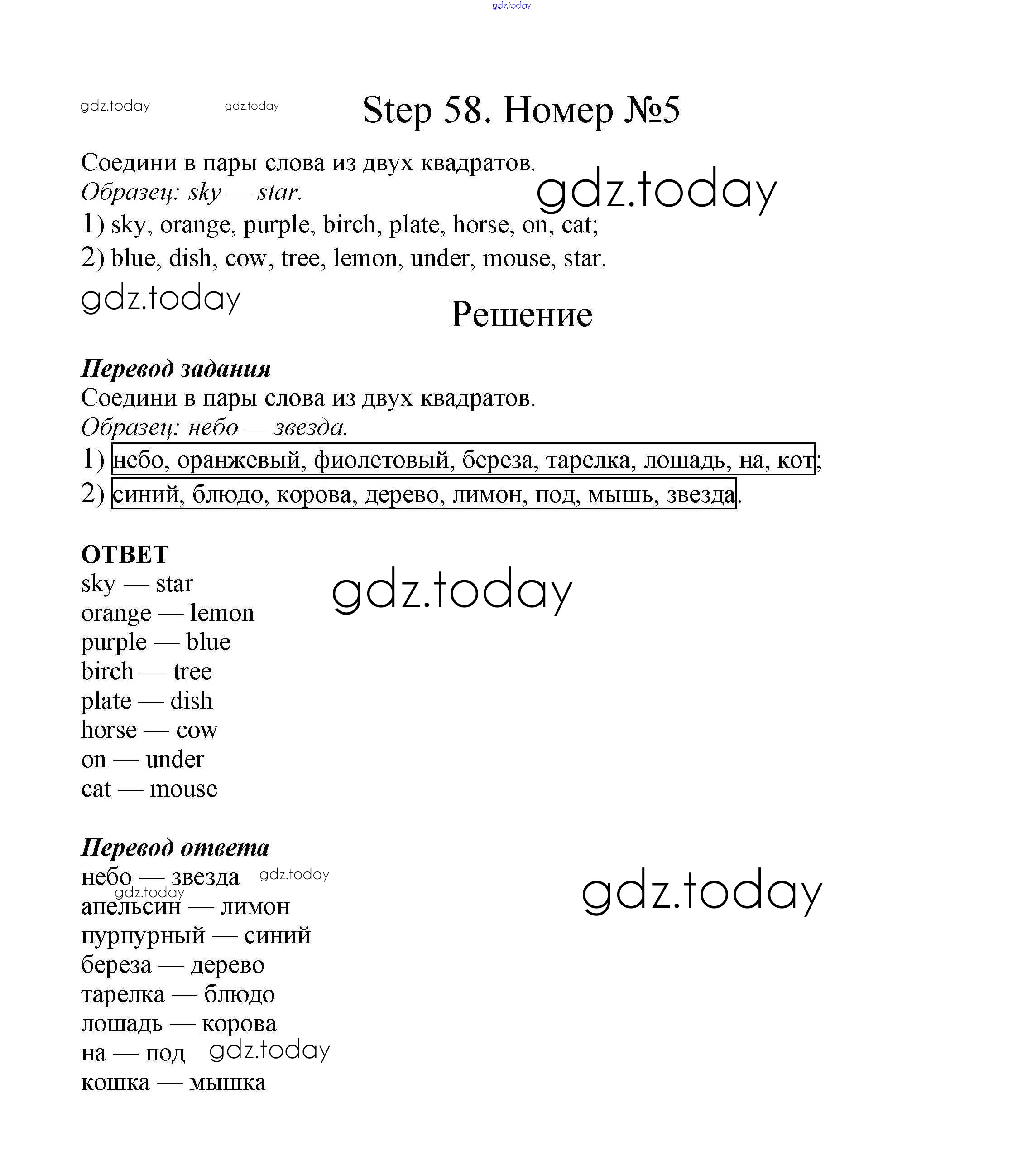 Ответы к Step 58 Решение. Часть 2 5 Учебнику по Английскому языку для 2 класса Афанасьева, Михеева Дрофа Rainbow 2017