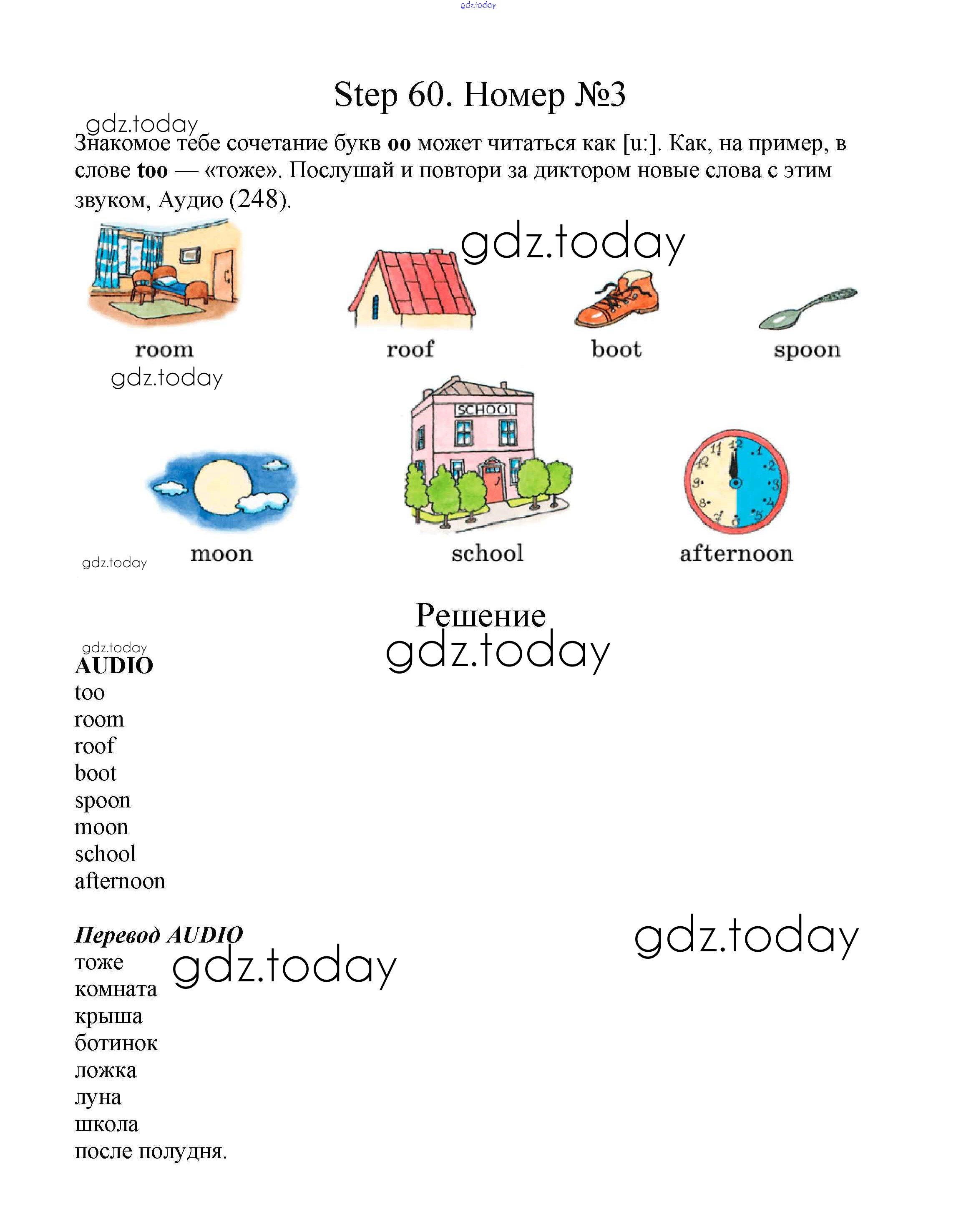 На страницах сайта gdz.today вы найдете учебный и вспомогательный материал, направленный на улучшения знаний школьной программы. ГДЗ - онлайн мир знаний Step 60 Решение. Часть 2 3 Учебнику по Английскому языку для 2 класса Афанасьева, Михеева Дрофа Rainbow 2017