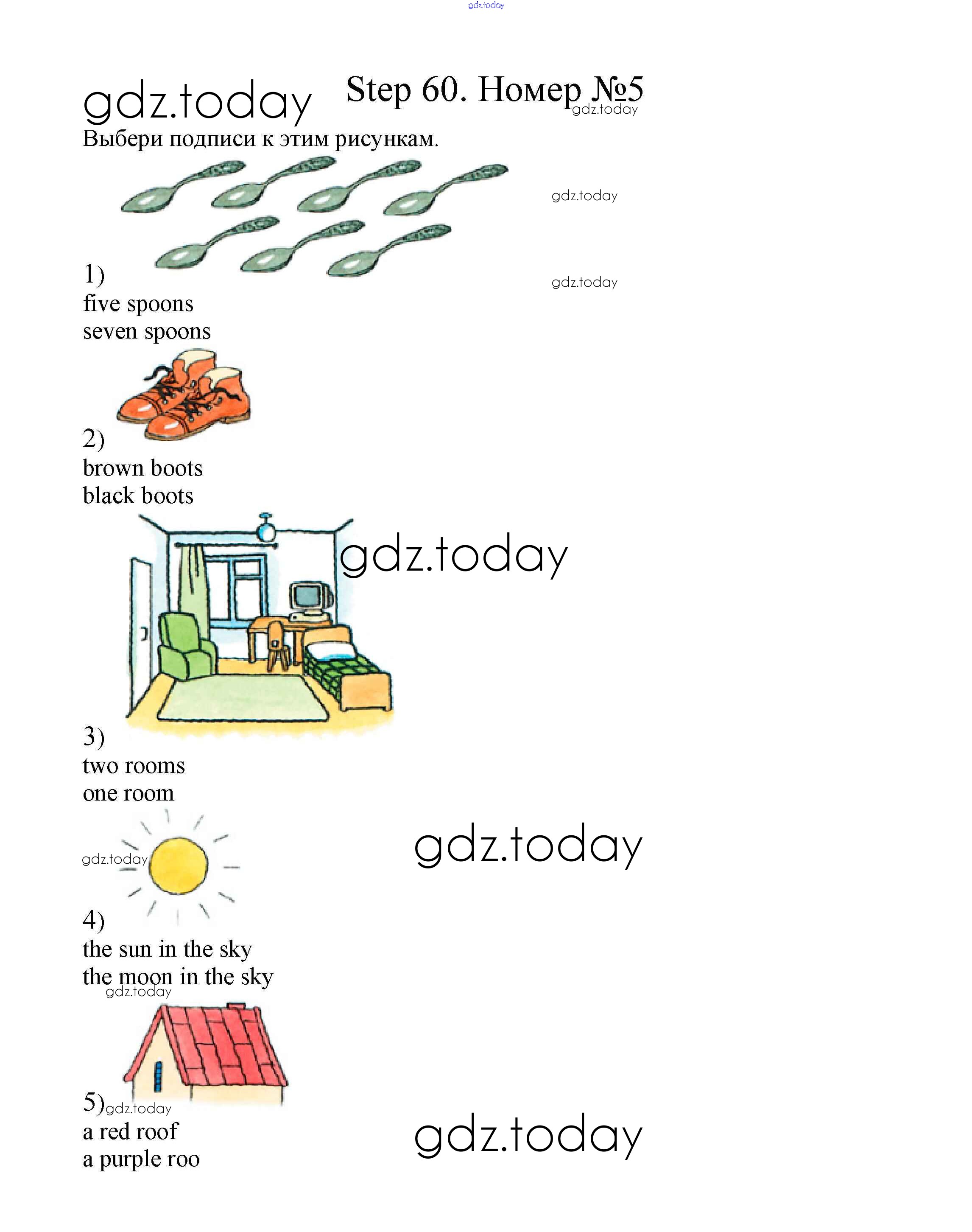 На страницах сайта gdz.today вы найдете учебный и вспомогательный материал, направленный на улучшения знаний школьной программы. ГДЗ - онлайн мир знаний Step 60 Решение. Часть 2 5 Учебнику по Английскому языку для 2 класса Афанасьева, Михеева Дрофа Rainbow 2017