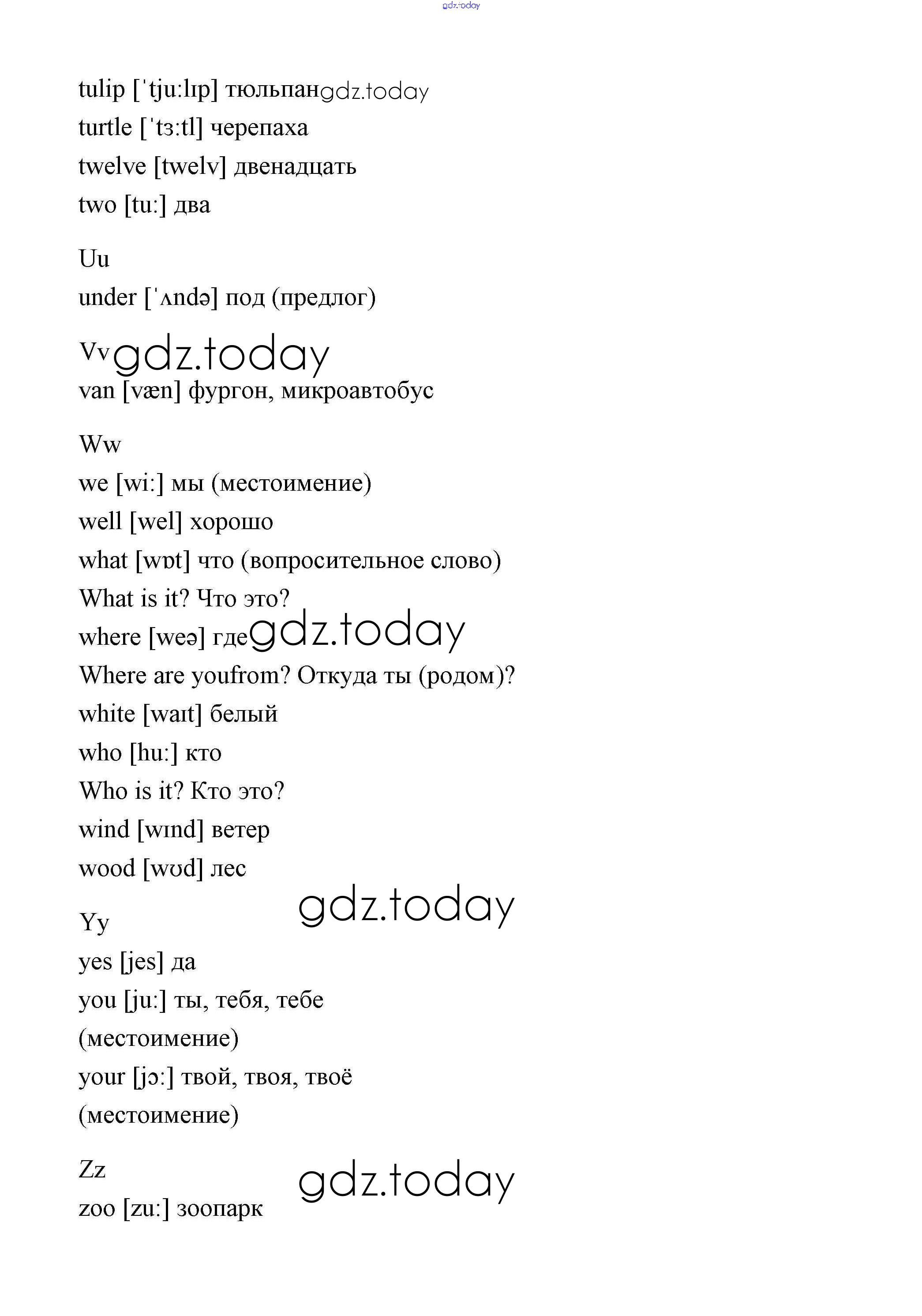 На страницах сайта gdz.today вы найдете учебный и вспомогательный материал, направленный на улучшения знаний школьной программы. ГДЗ - онлайн мир знаний Словарь Решение. Часть 2 1 Учебнику по Английскому языку для 2 класса Афанасьева, Михеева Дрофа Rainbow 2017