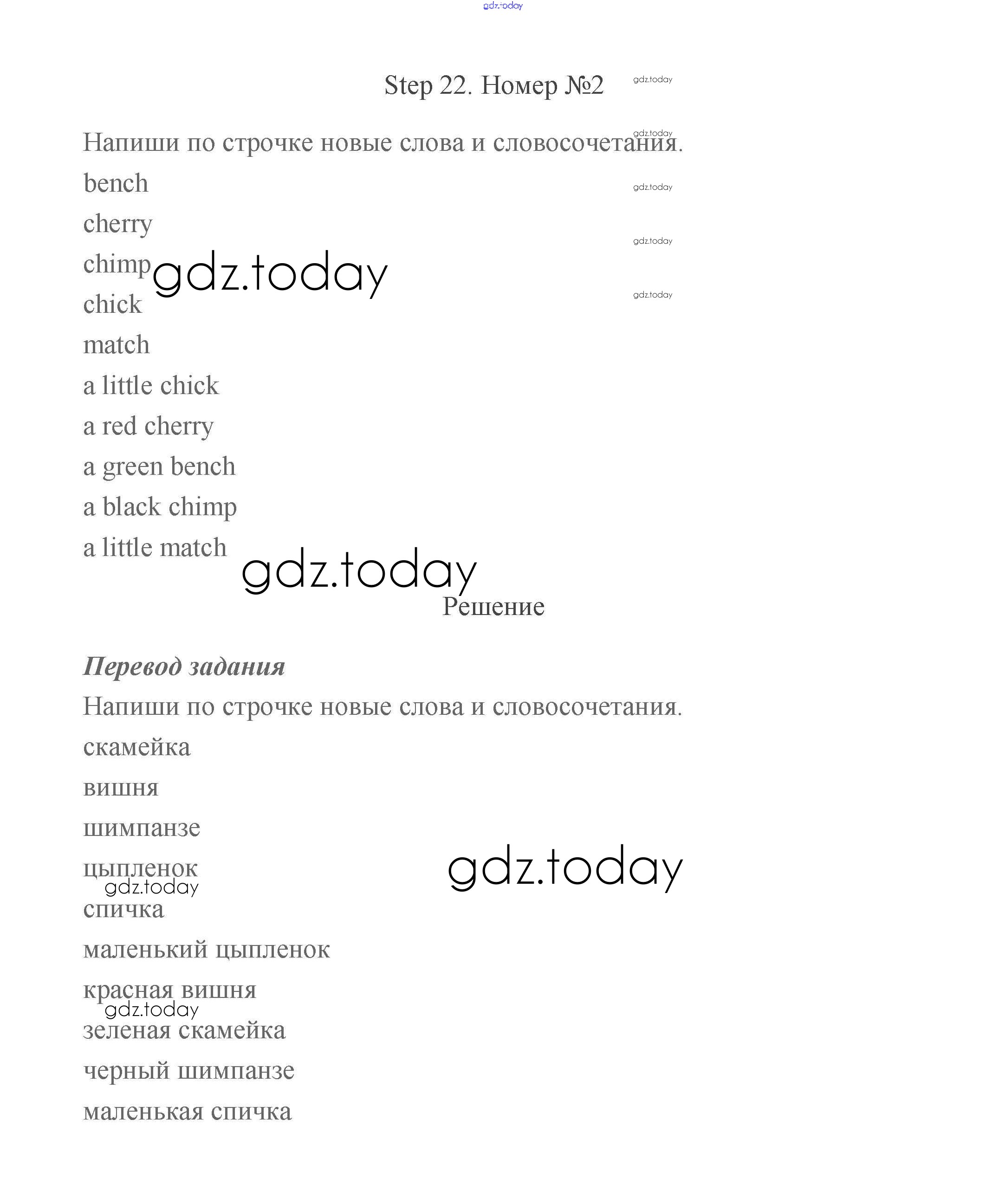 На страницах сайта gdz.today вы найдете учебный и вспомогательный материал, направленный на улучшения знаний школьной программы. ГДЗ - онлайн мир знаний Step (решение) 22 Рабочей тетради по Английскому языку для 2 класса Афанасьева, Михеева Дрофа Rainbow 2016