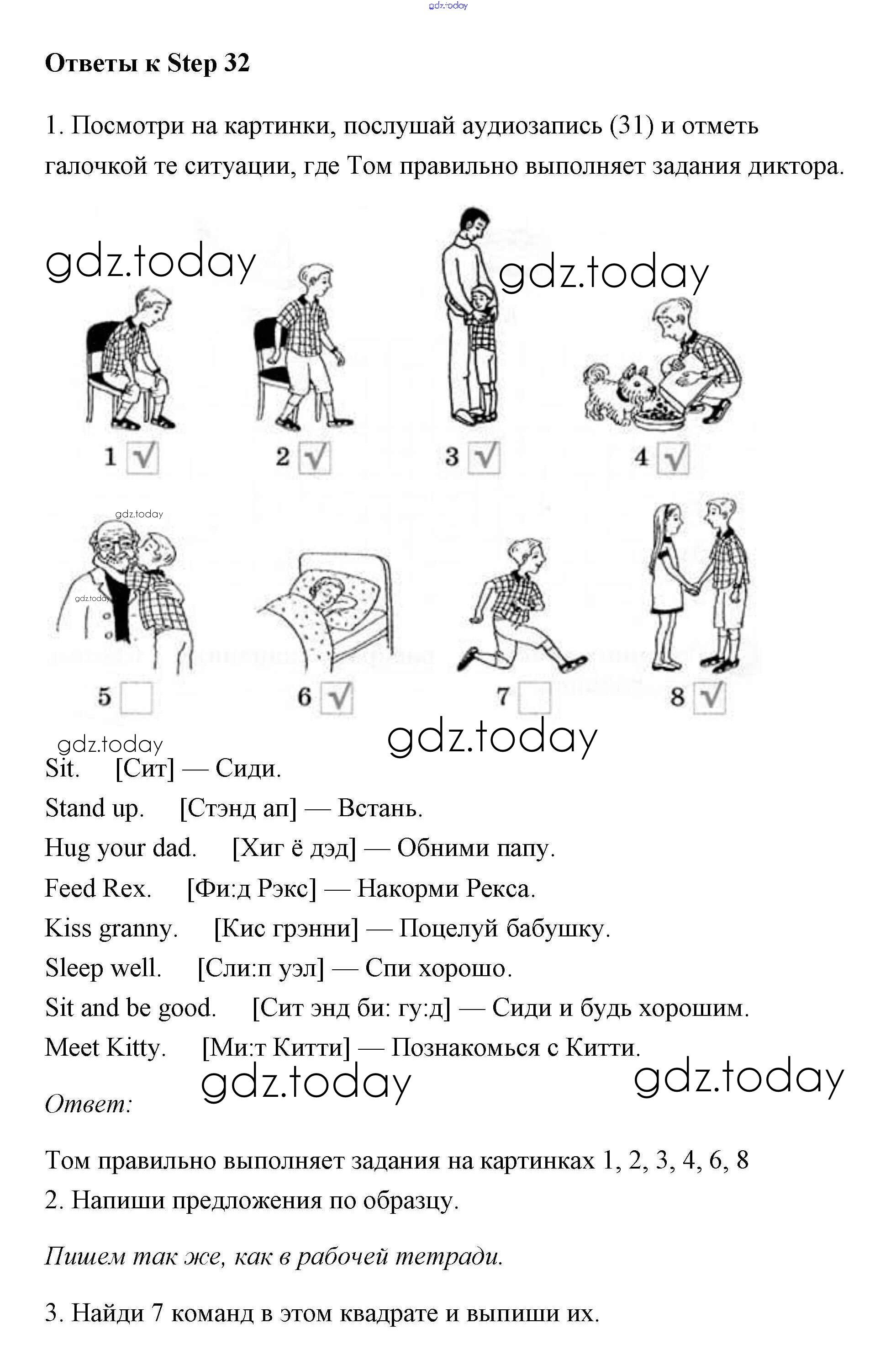 На страницах сайта gdz.today вы найдете учебный и вспомогательный материал, направленный на улучшения знаний школьной программы. ГДЗ - онлайн мир знаний Step (решение) 32 Рабочей тетради по Английскому языку для 2 класса Афанасьева, Михеева Дрофа Rainbow 2016