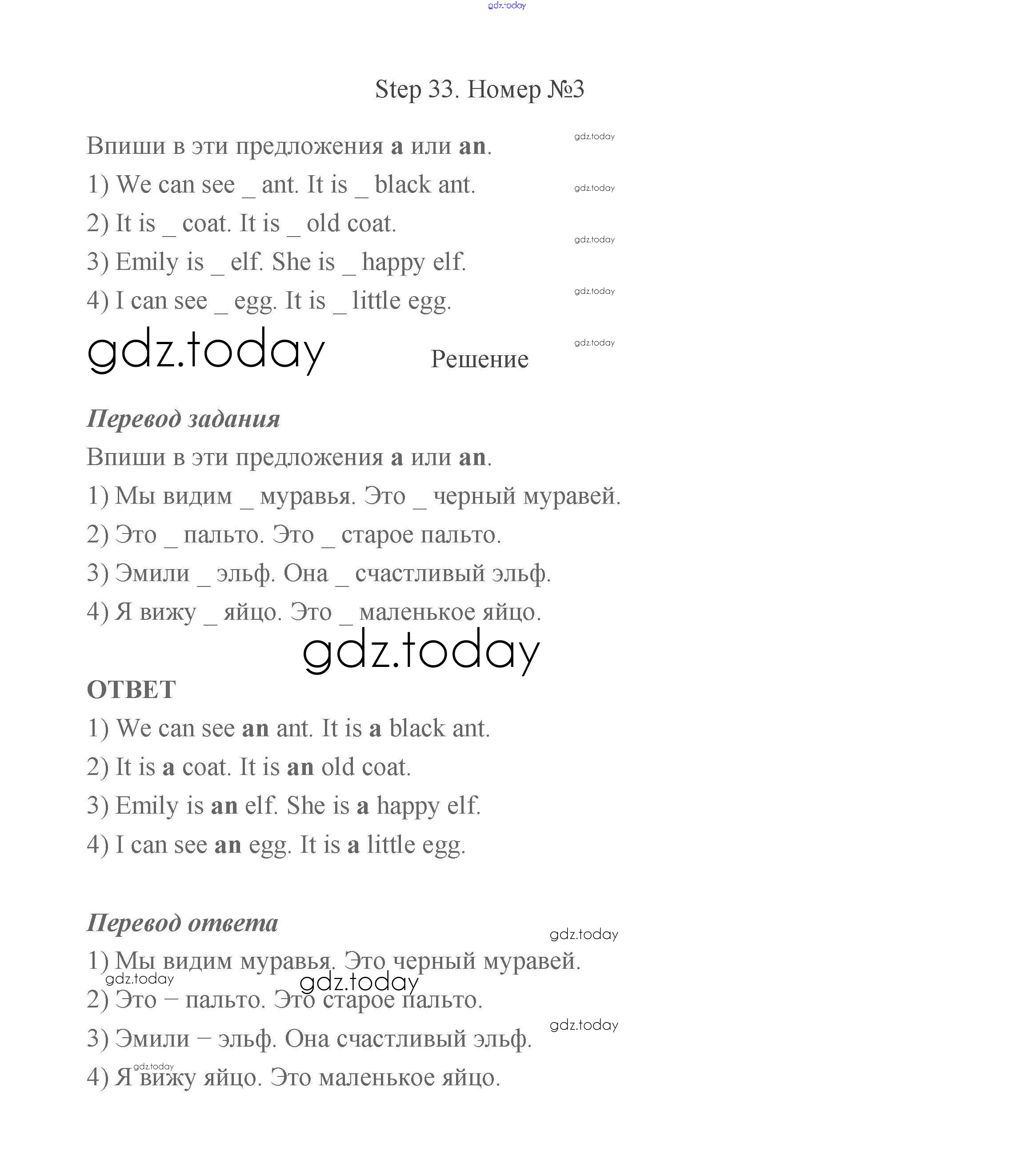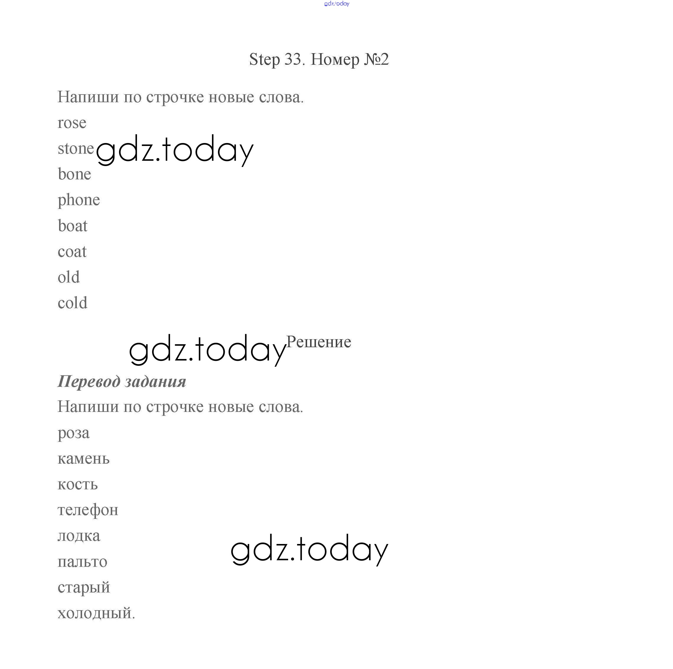 На страницах сайта gdz.today вы найдете учебный и вспомогательный материал, направленный на улучшения знаний школьной программы. ГДЗ - онлайн мир знаний Step (решение) 33 Рабочей тетради по Английскому языку для 2 класса Афанасьева, Михеева Дрофа Rainbow 2016