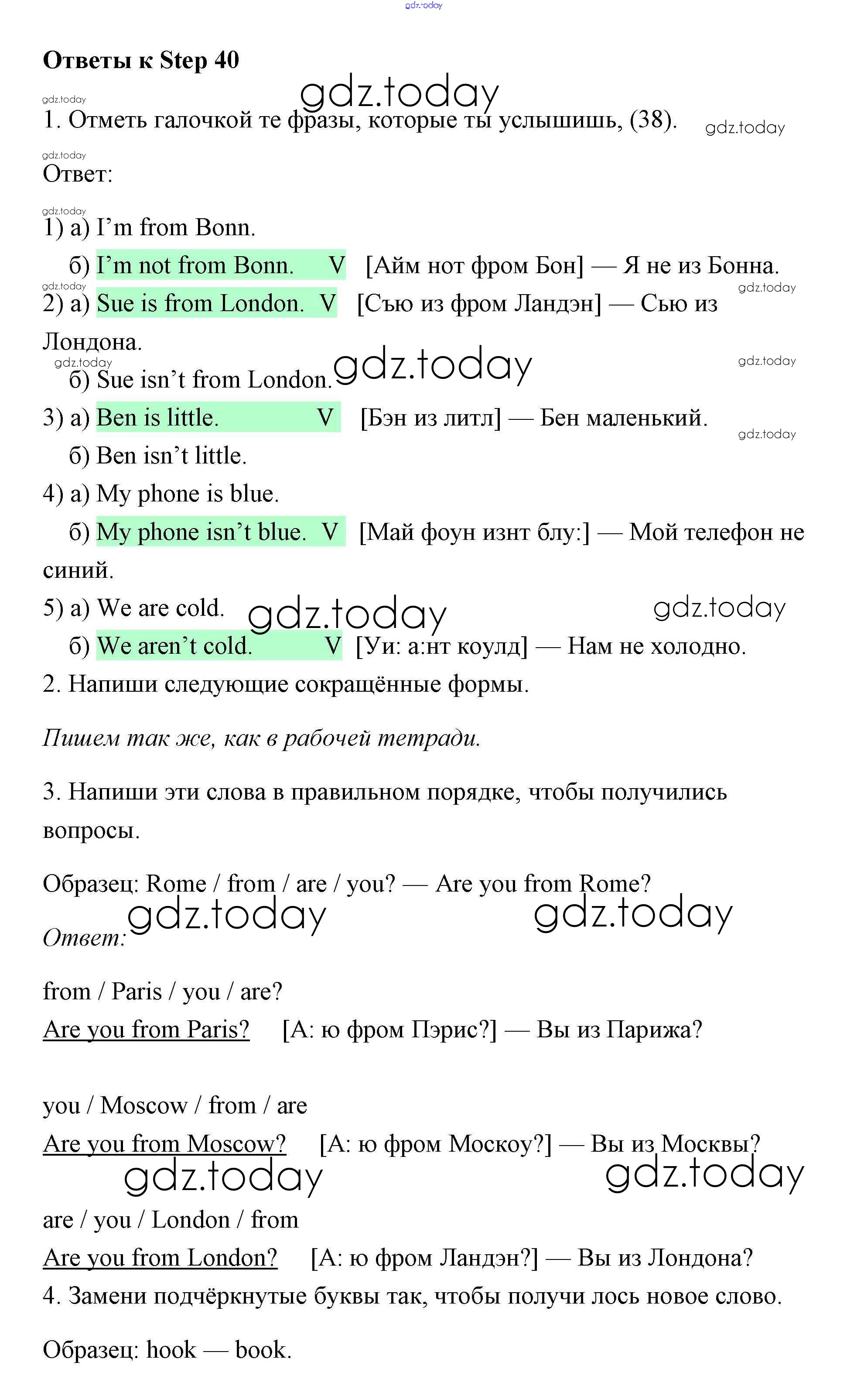 Ответы к Step (решение) 40 Рабочей тетради по Английскому языку для 2 класса Афанасьева, Михеева Дрофа Rainbow 2016