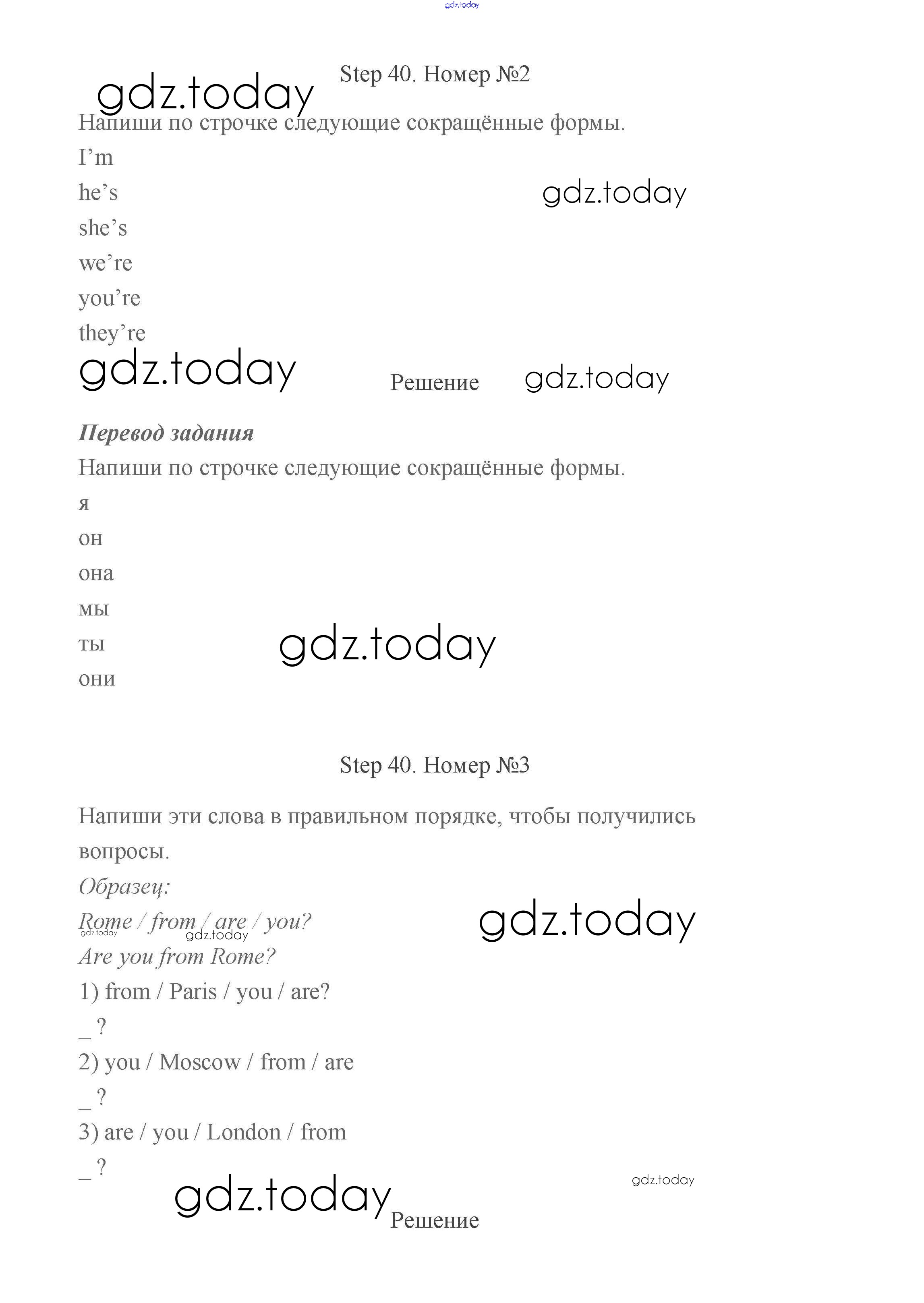 На страницах сайта gdz.today вы найдете учебный и вспомогательный материал, направленный на улучшения знаний школьной программы. ГДЗ - онлайн мир знаний Step (решение) 40 Рабочей тетради по Английскому языку для 2 класса Афанасьева, Михеева Дрофа Rainbow 2016