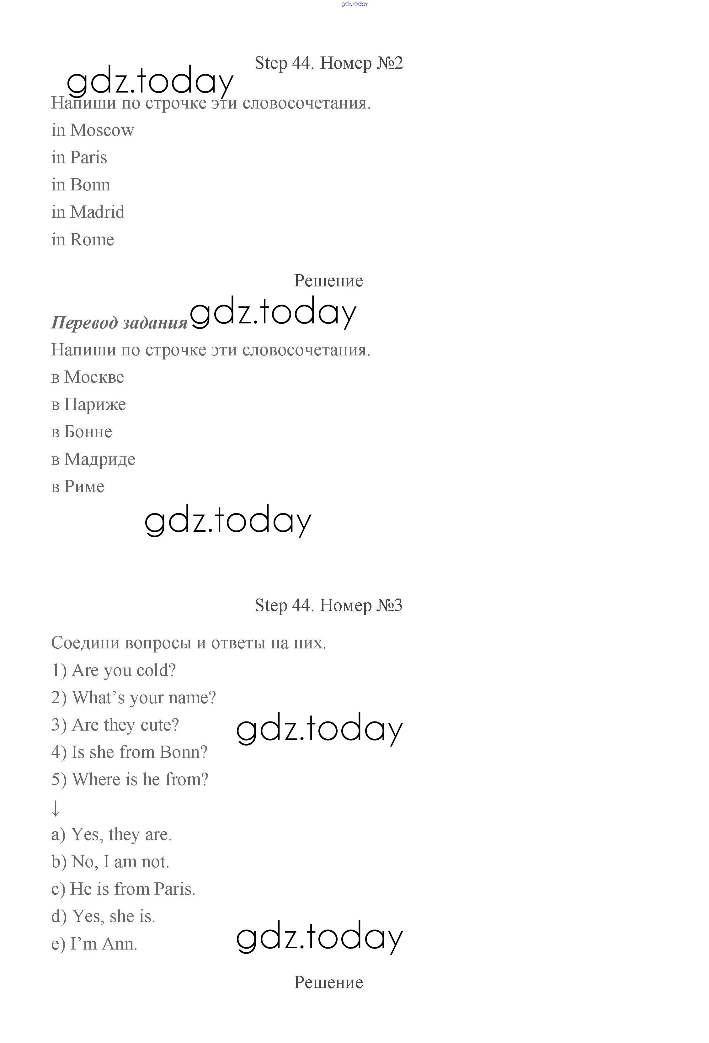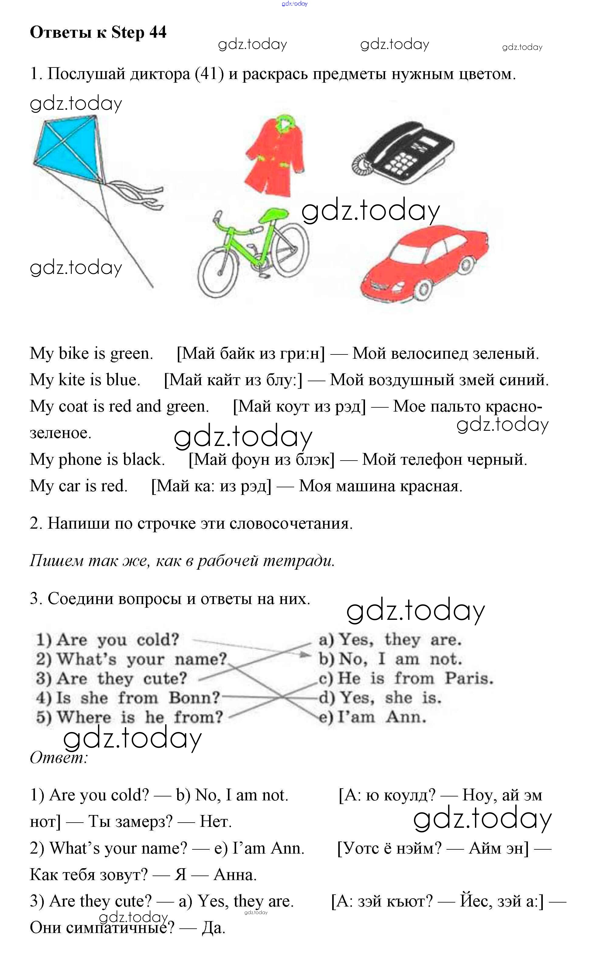 Ответы к Step (решение) 44 Рабочей тетради по Английскому языку для 2 класса Афанасьева, Михеева Дрофа Rainbow 2016