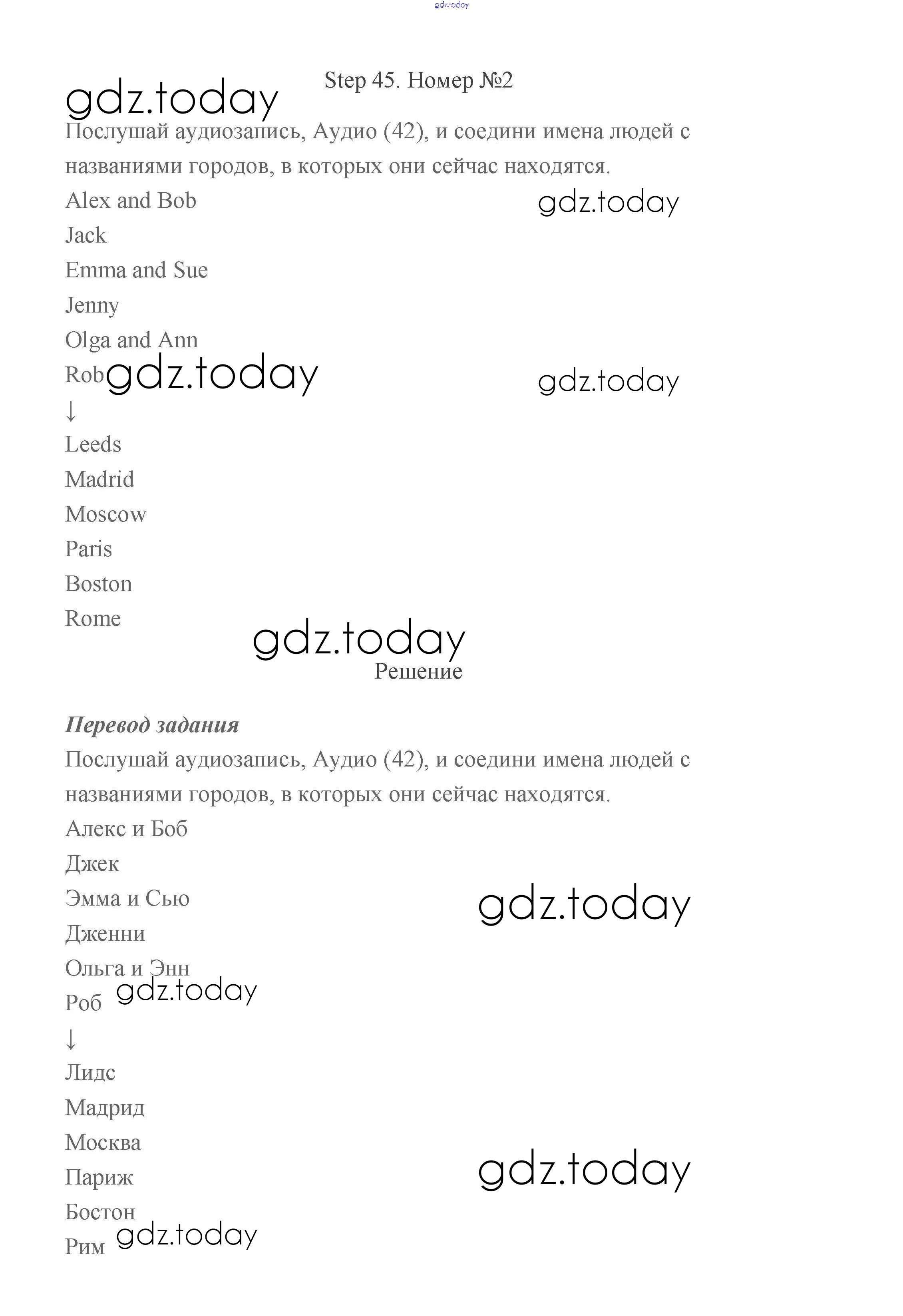 На страницах сайта gdz.today вы найдете учебный и вспомогательный материал, направленный на улучшения знаний школьной программы. ГДЗ - онлайн мир знаний Step (решение) 45 Рабочей тетради по Английскому языку для 2 класса Афанасьева, Михеева Дрофа Rainbow 2016