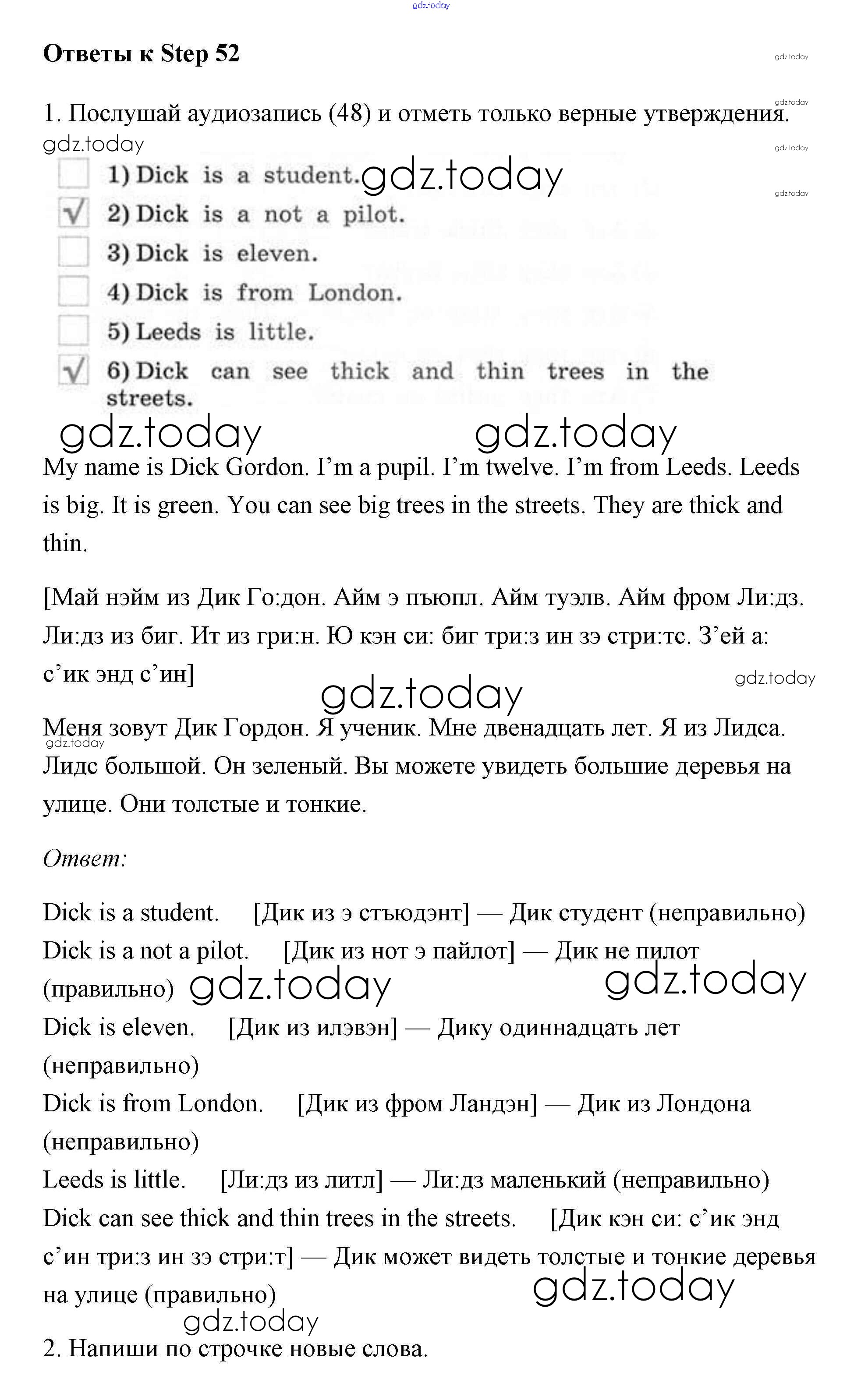 На страницах сайта gdz.today вы найдете учебный и вспомогательный материал, направленный на улучшения знаний школьной программы. ГДЗ - онлайн мир знаний Step (решение) 52 Рабочей тетради по Английскому языку для 2 класса Афанасьева, Михеева Дрофа Rainbow 2016