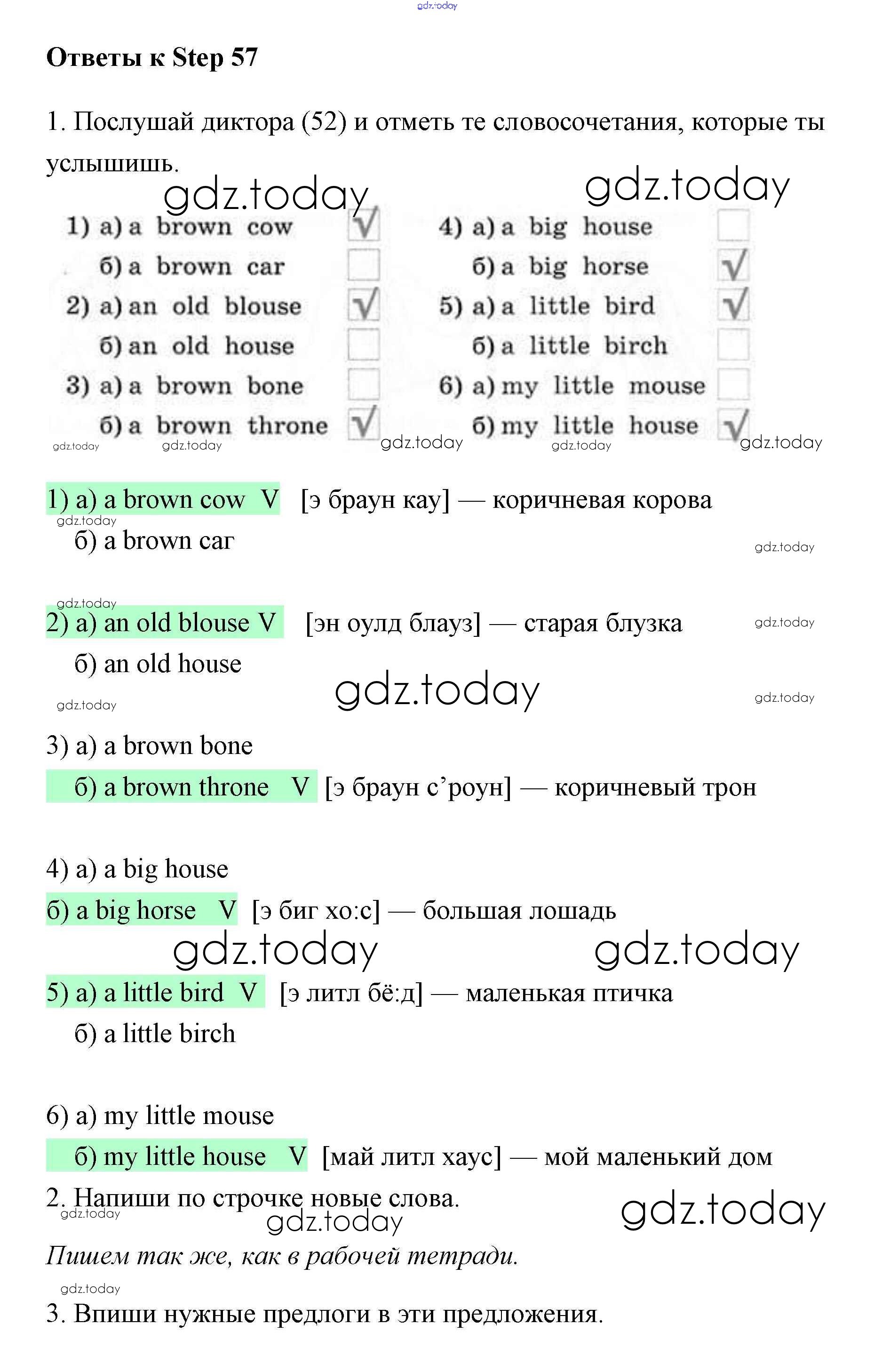 Ответы к Step (решение) 57 Рабочей тетради по Английскому языку для 2 класса Афанасьева, Михеева Дрофа Rainbow 2016