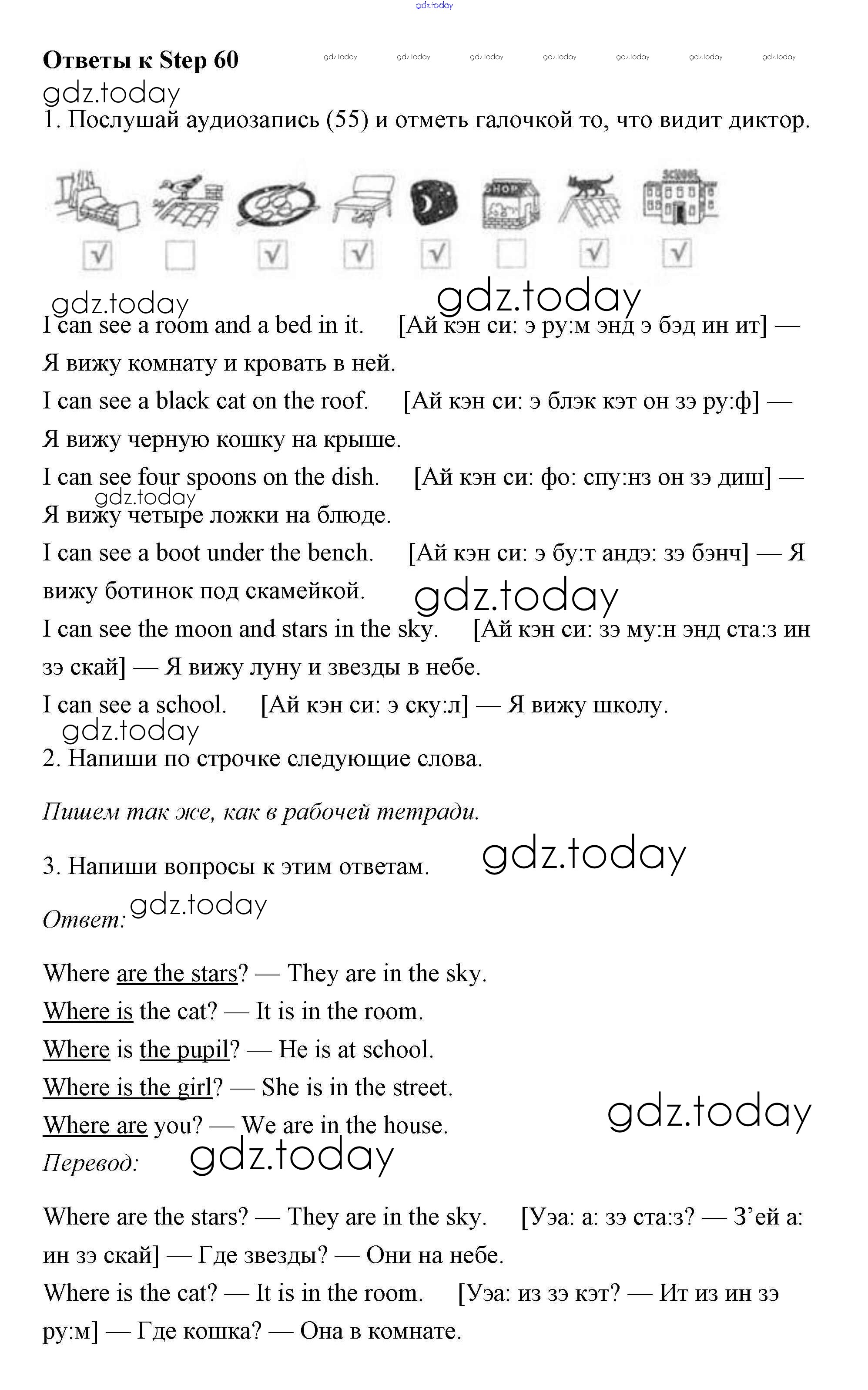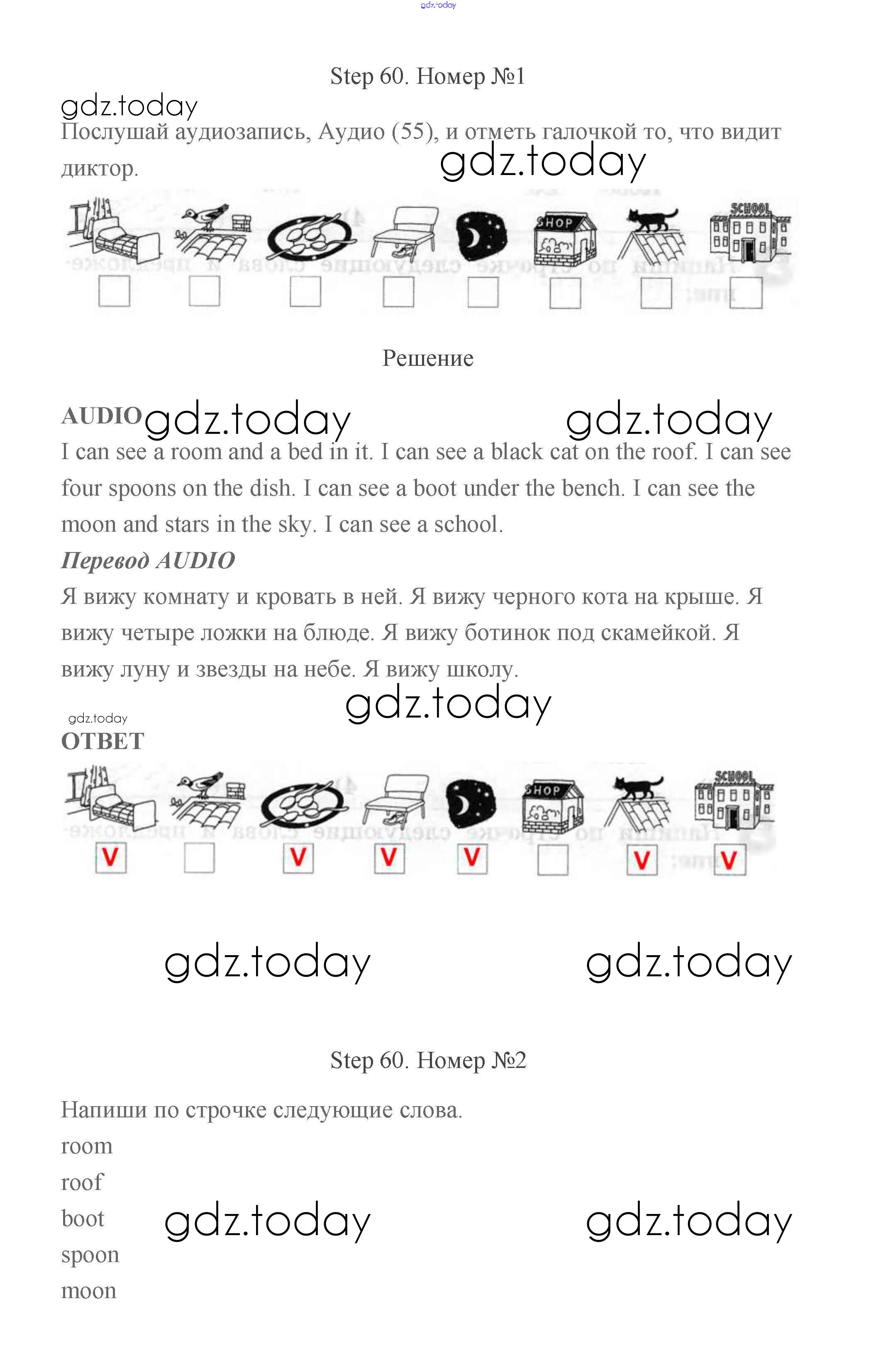 На страницах сайта gdz.today вы найдете учебный и вспомогательный материал, направленный на улучшения знаний школьной программы. ГДЗ - онлайн мир знаний Step (решение) 60 Рабочей тетради по Английскому языку для 2 класса Афанасьева, Михеева Дрофа Rainbow 2016