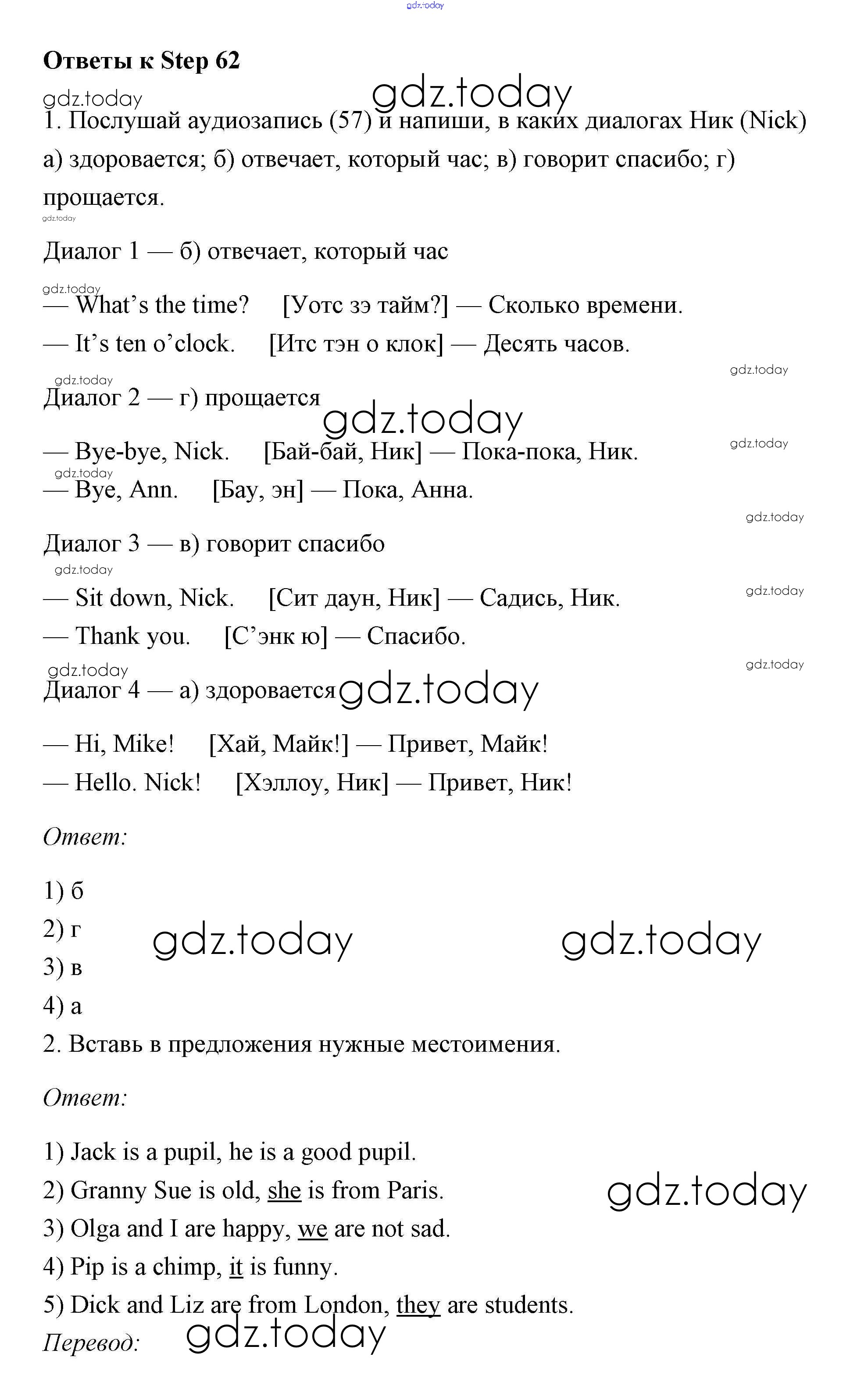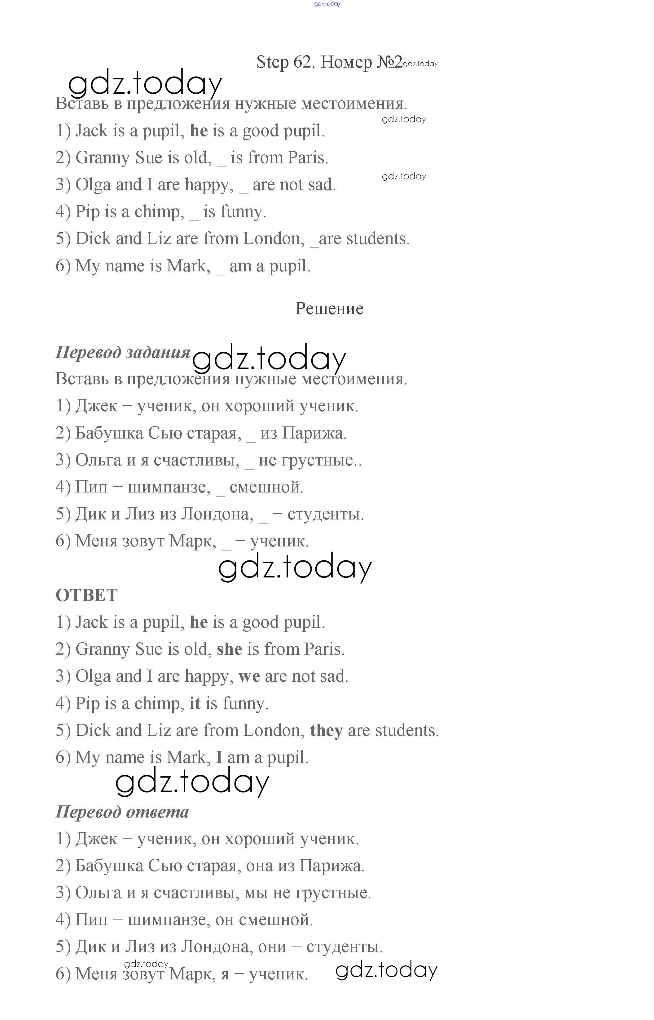 Ответы к Step (решение) 62 Рабочей тетради по Английскому языку для 2 класса Афанасьева, Михеева Дрофа Rainbow 2016